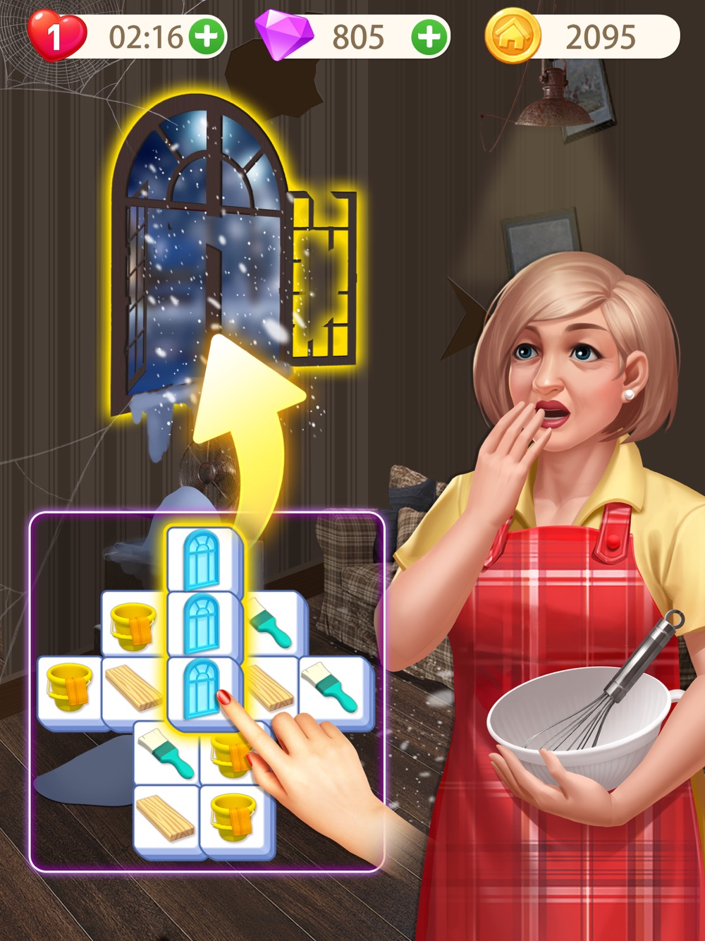 Different from other "home design" games, Happy Makeover also make you a tile master! While enjoying the journey of your home design makeover, beat the match-3 levels to win more rewards and boosts. It will train your brain flexibility and exercise your memory ability! It will give you a calm atmosphere and you will find yourself at pure relaxing mood. Try it out and have this special experience!
