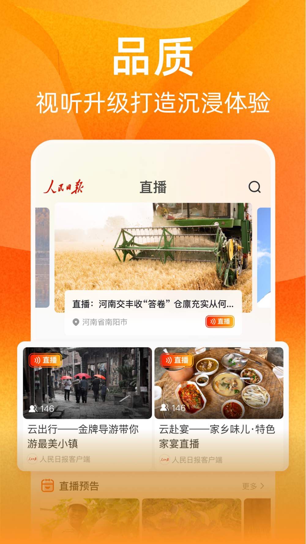 视界:人民日报官方视频客户端1、PUGC平台 首个以PUGC为特色的中央媒体视频平台,主流价值引领,激发创新活力2、服务升级 探索建立新闻+政务服务运营模式,助力乡村振兴,服务经济社会发展3、央地融合 打通中央、省、市、县四级媒体,联动政府、媒体、个人共建共治共享4、沉浸体验 具备AI+秒播+8k能力,视听更清晰,体验更沉浸