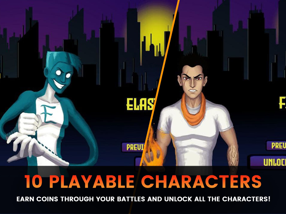 Unlock new characters by collecting coins in Arcade mode. Each character has a unique set of skills with power-based attacks. Test out the characters after unlocking them to see which one is right for you!