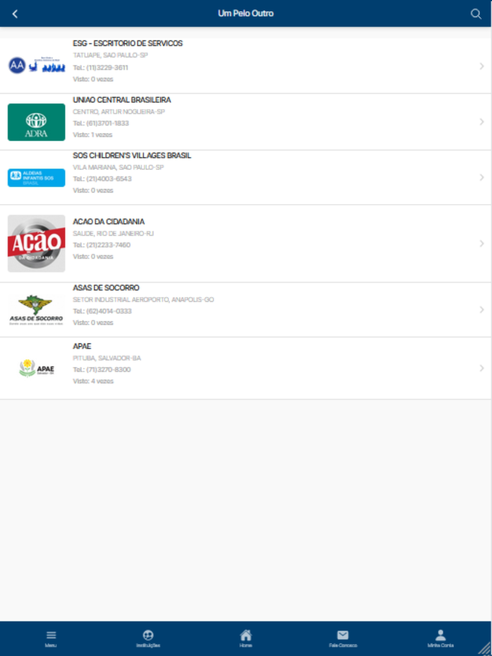 Você já pensou em ajudar alguma entidade e acabou ficando sem saber como fazer e para quem fazer? Ou apenas não tem confiança para doar para as instituições menos conhecidas? O Projeto Um Pelo Outro é um aplicativo de doações que te permite encontrar essas entidades sérias e comprometidas com facilidade. Com o app você encontra as instituições mais próximas da sua localização e ainda tem a opção de doar diretamente para cada instituição. Sabemos o quanto podemos nos perder na rotina e não ter tempo para ajudar quem precisa, mas não se preocupe!