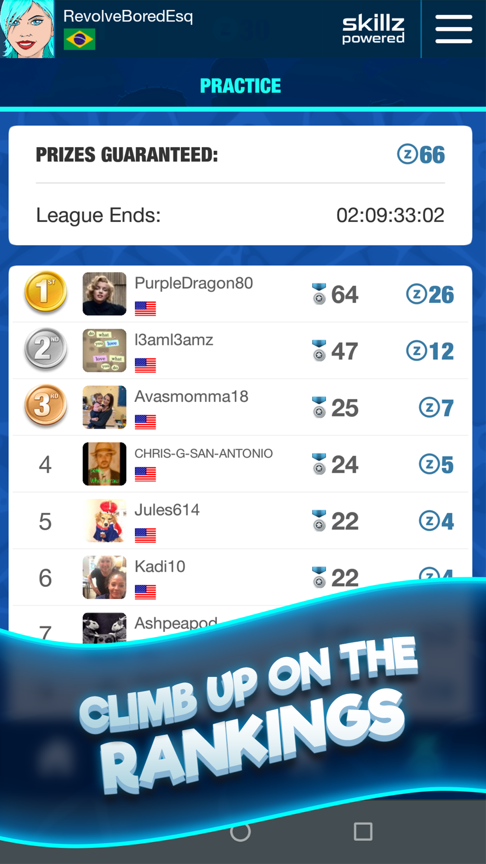 Challenge people around the world with Skillz, a competition platform complete with leaderboards, trophies, physical or virtual prizes, and an amazing loyalty program that rewards you just for playing! Skillz: eSports for Everyone.