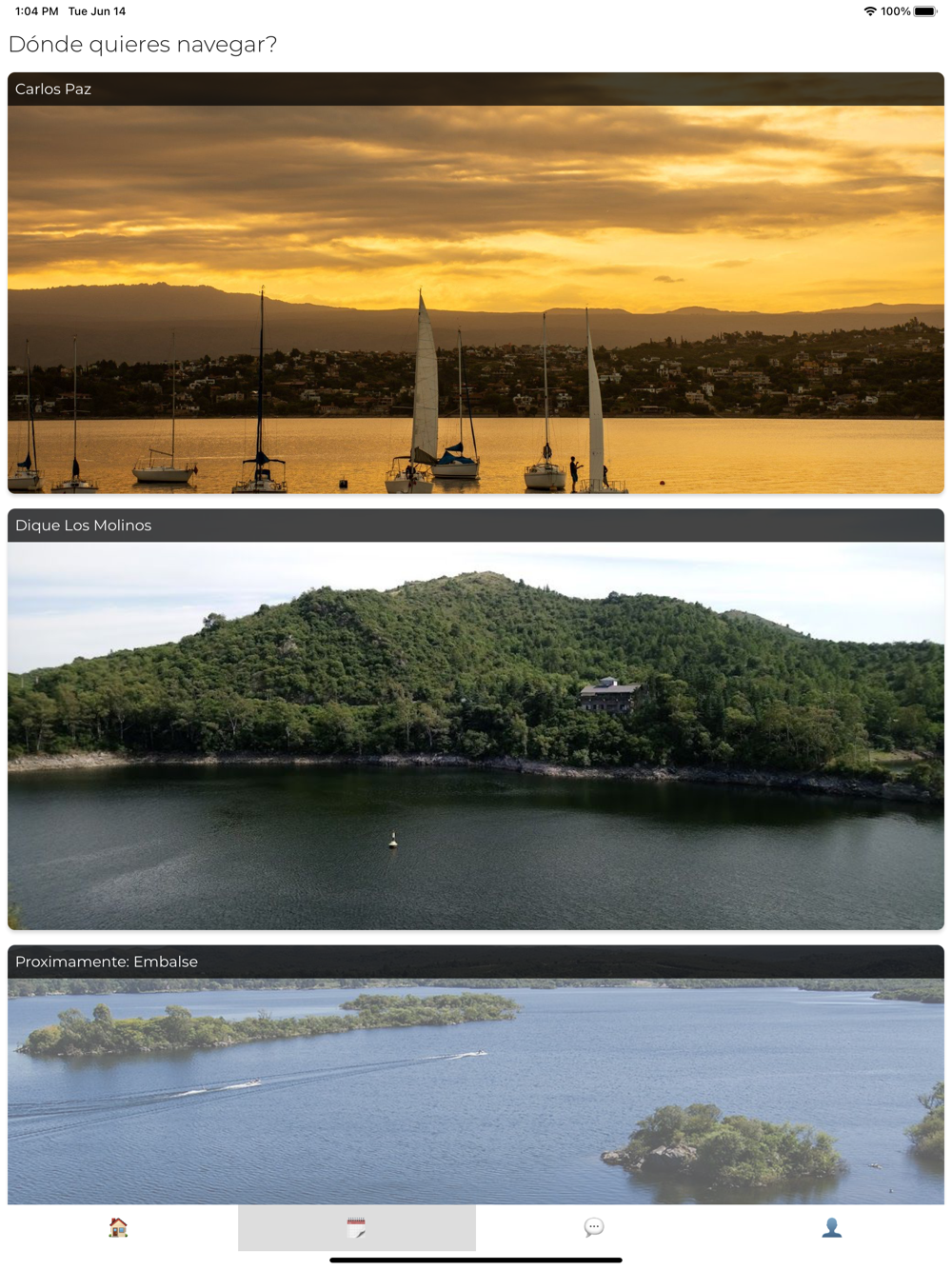 Podras consultar las alertas de los lagos de Cordoba, y los miembros de La Barca podrán reservar turnos para navegar en ellos.