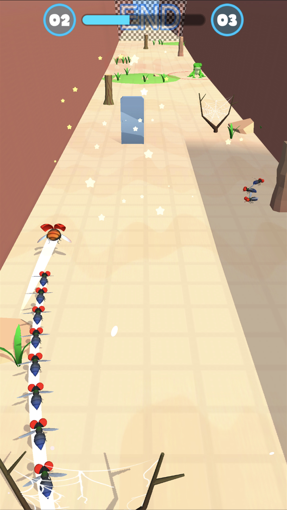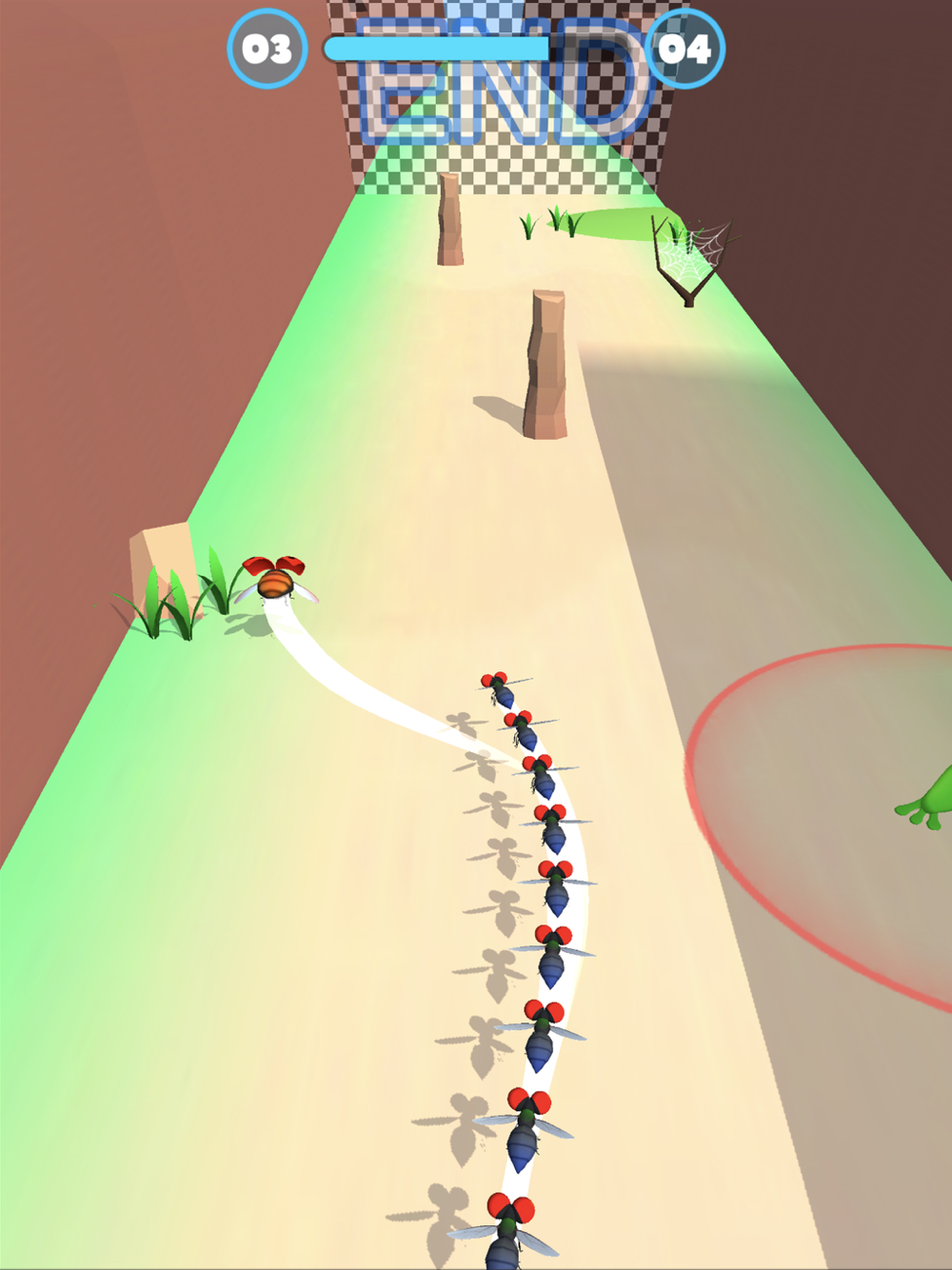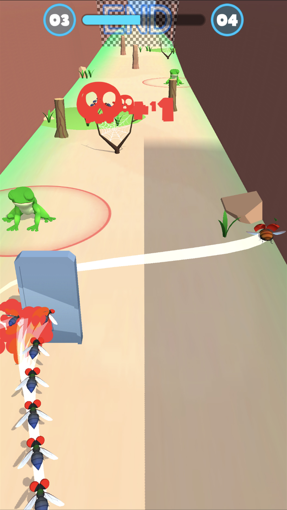Move quickly left and right to get rid of the chasers and use obstacles to destroy them.