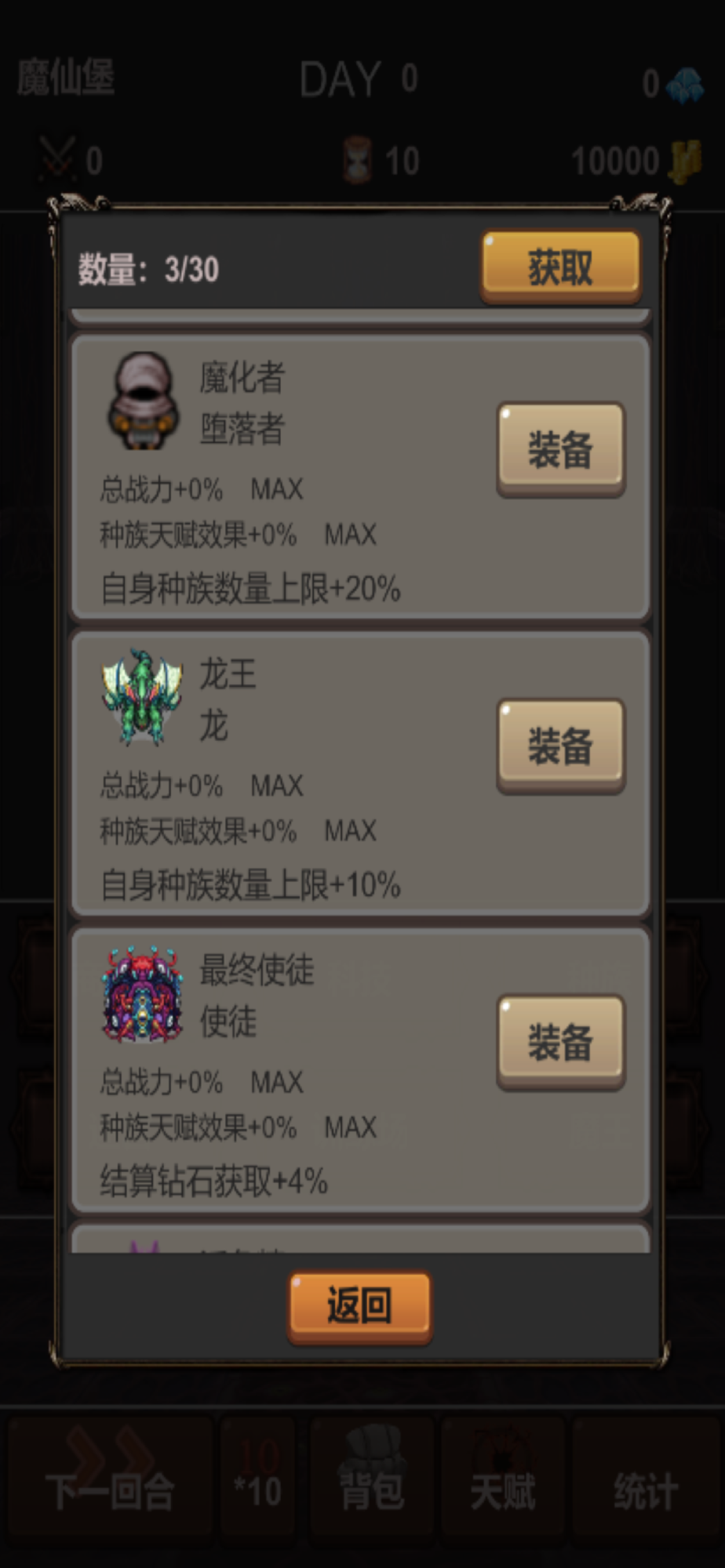 The demon king's men are diverse, and each race has different special effects. However, due to the limited funds, you can only choose some to join your castle, and then cultivate them to develop into your demon army