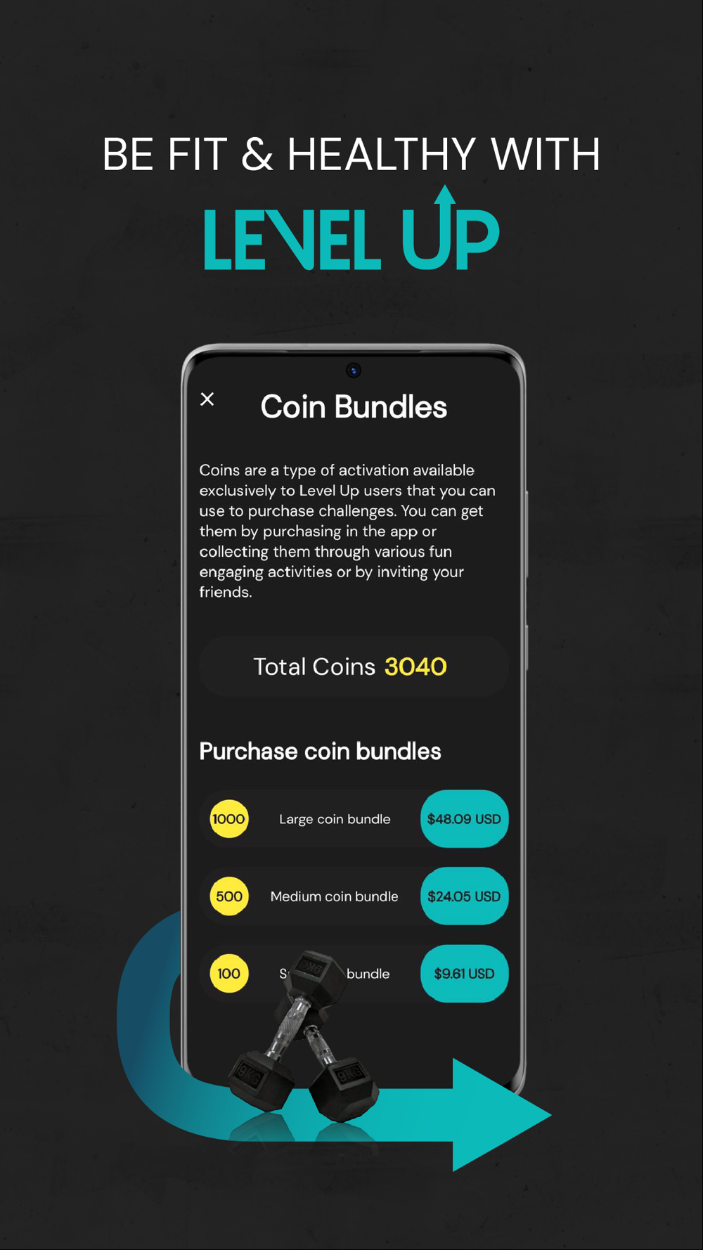 • Gamification where your interactions are rewarded with experience points and coins for you to use throughout the app