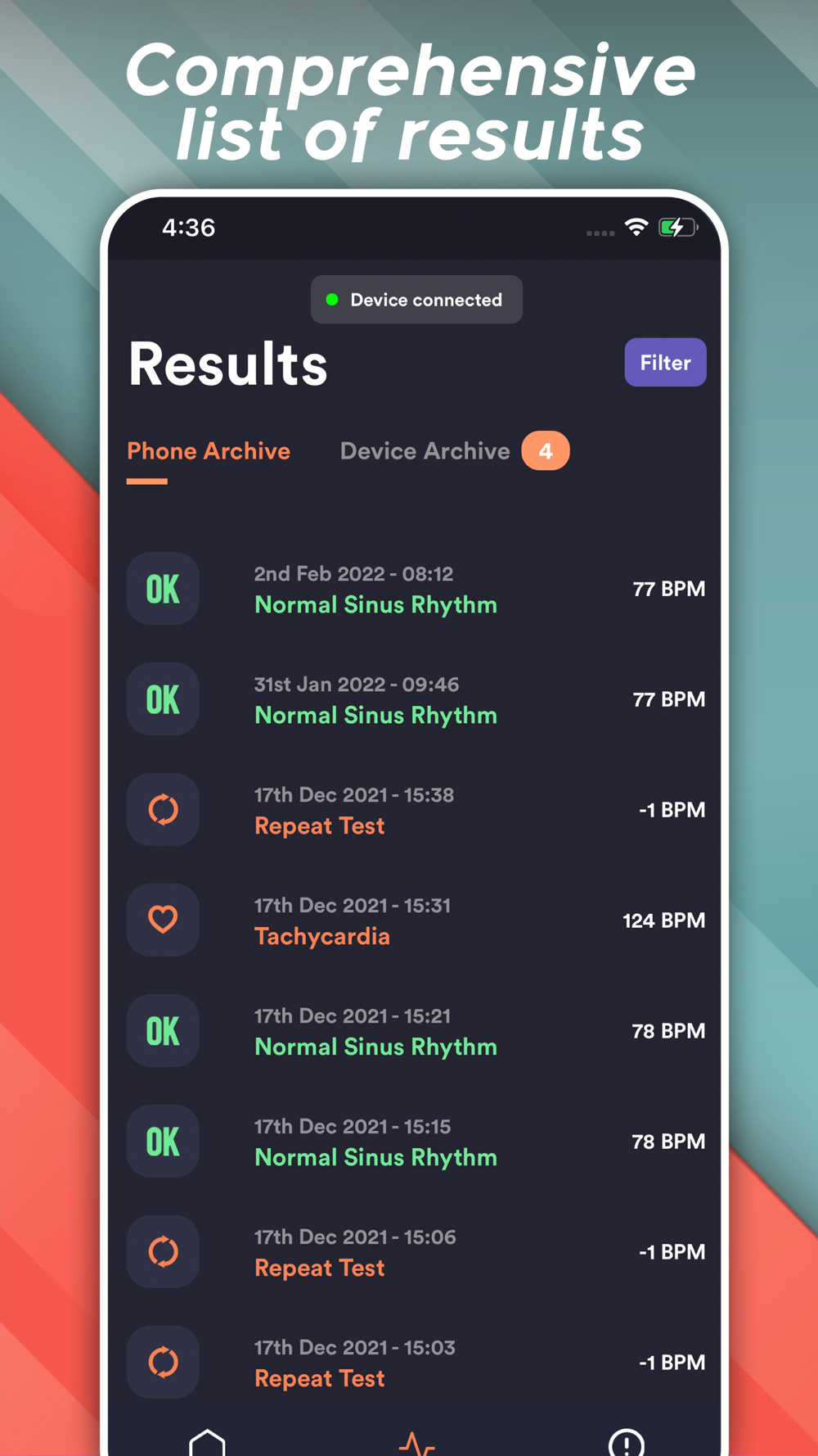 Track your heart health everywhere you are and detect the most common arrhythmias, with the accuracy of a clinical setting.
