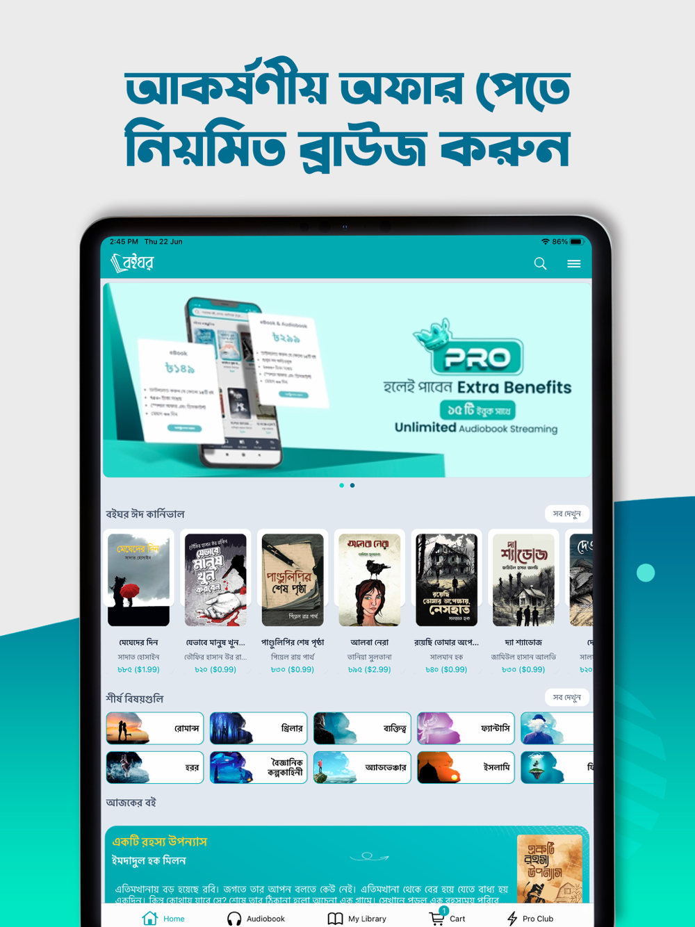 Boighor is offering you the largest library of Bengali books of all times & genres, Captivating Audio-books & the best of English classics with the smartest & simplest UI design for your utmost eBook reading experience.
