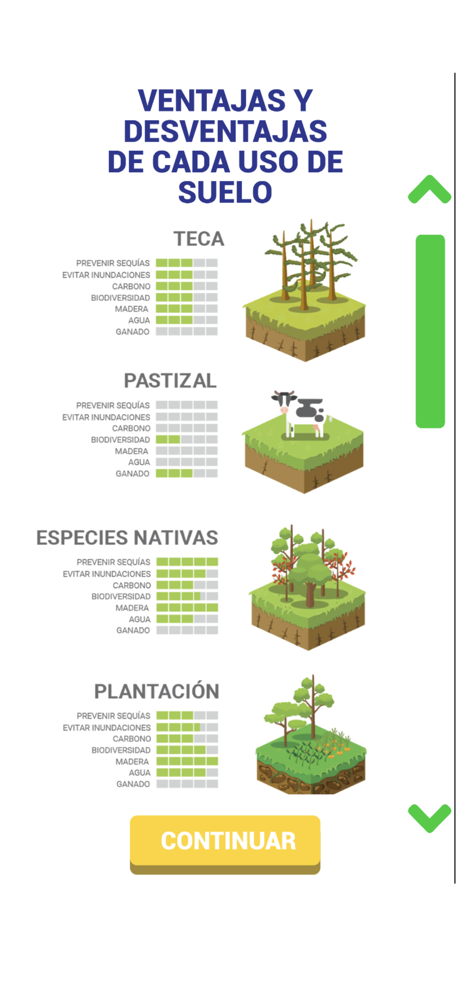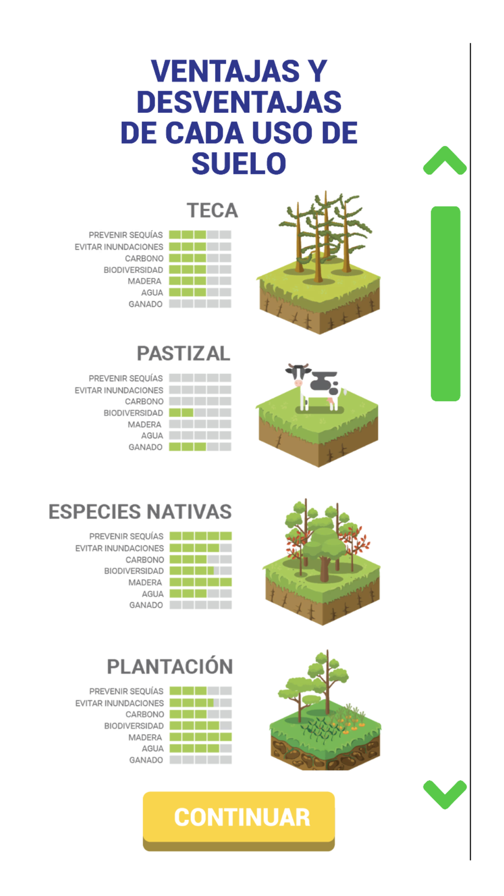 Would you prefer to cut everything down and have a pasture full of cattle? Mix and match the different land uses available and discover the most sustainable combinations for the tropics and the environment. You can play with your cell phone, tablet or computer. Enjoy!