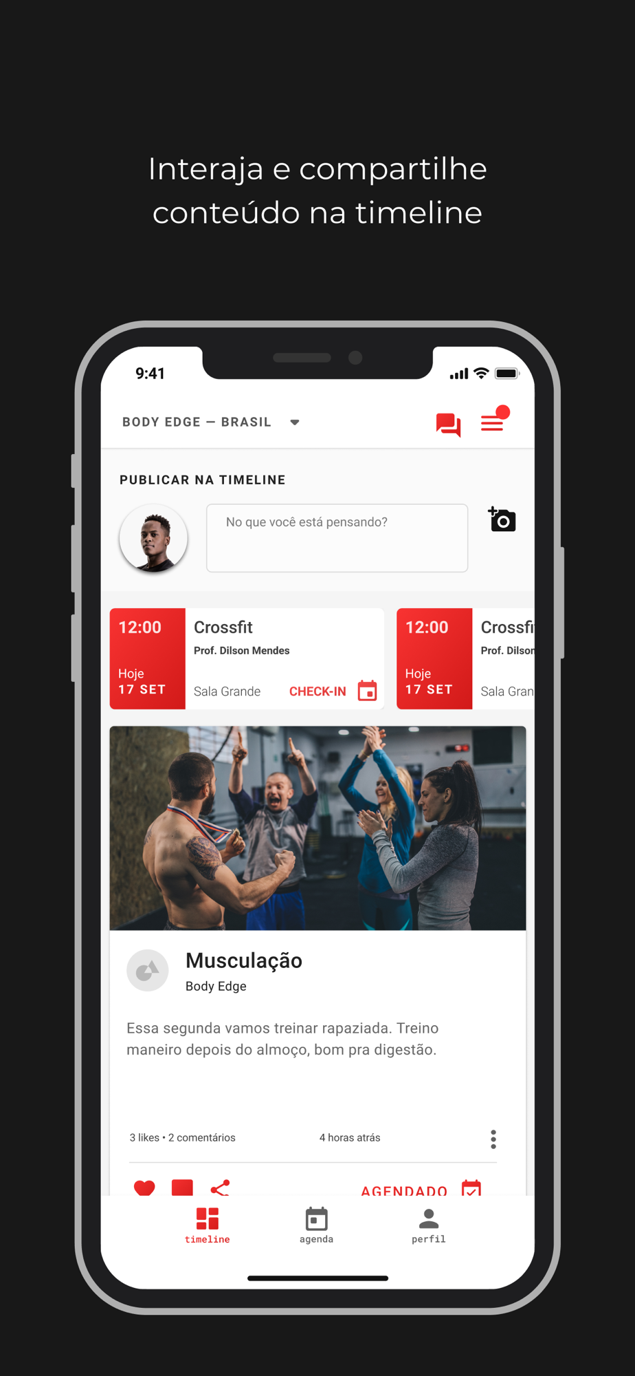 - Interaja com os professores e colegas, através da TIMELINE, postando fotos e mensagens.