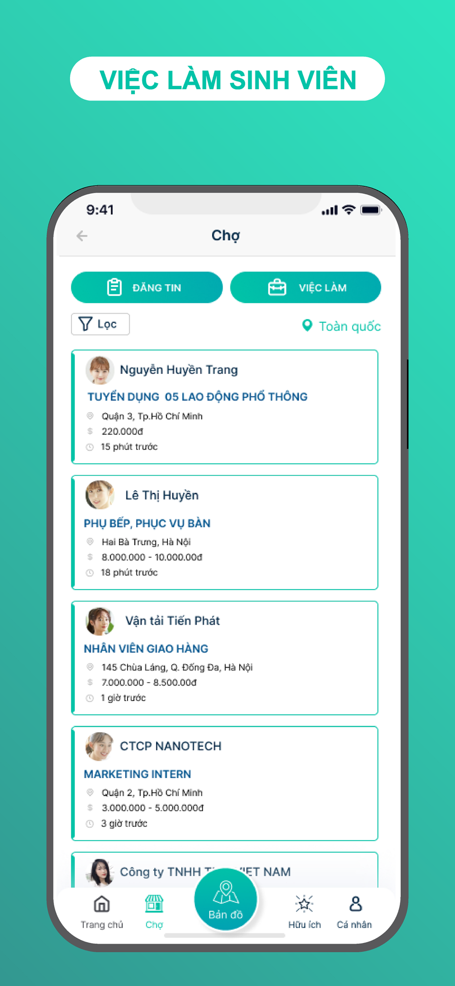 ● Việc làm đa dạng: Từ những công việc lao động phổ thông đơn giản đến những công việc tại nhà hay việc làm thêm, part time, online cho sinh viên, người đi làm đều có mặt trên ứng dụng.