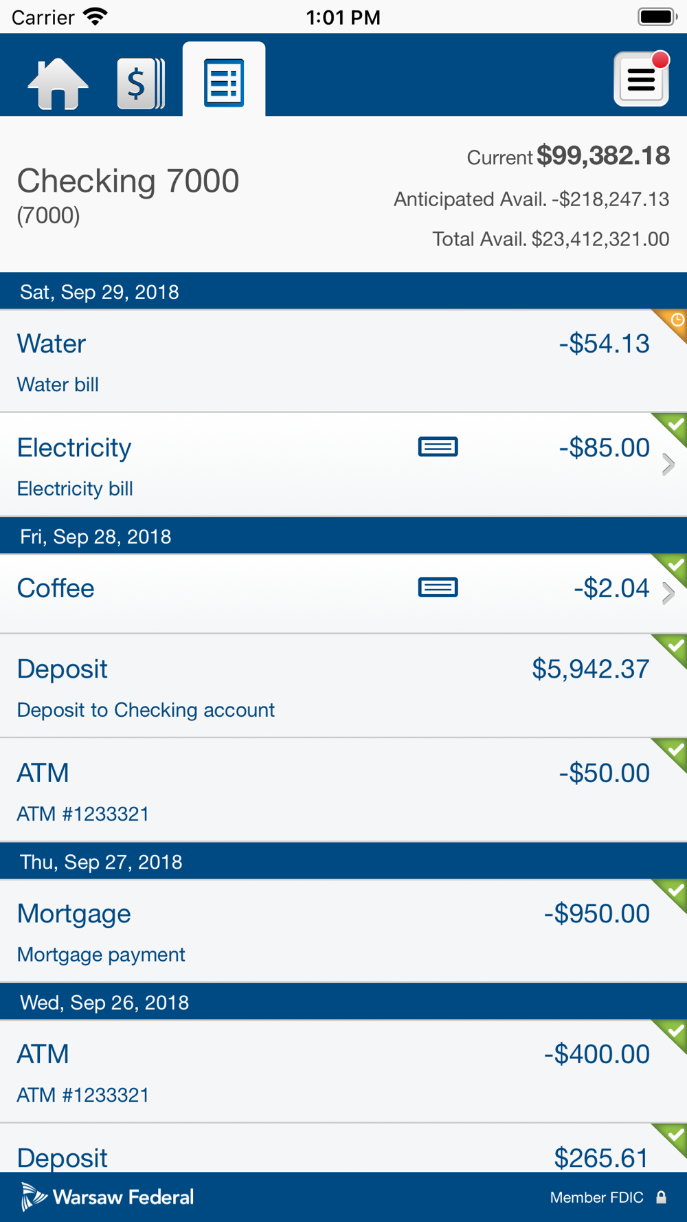 • View deposit history in the app