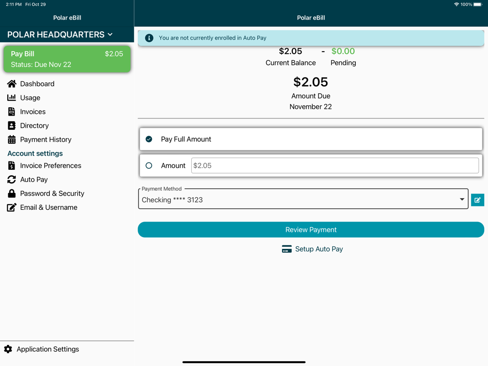 Polar's eBill Mobile App provides a wide range of options for managing your billing account. Pay your bill safely and securely, view your billing statements, check your usage, look up information from our online directory, and more!
