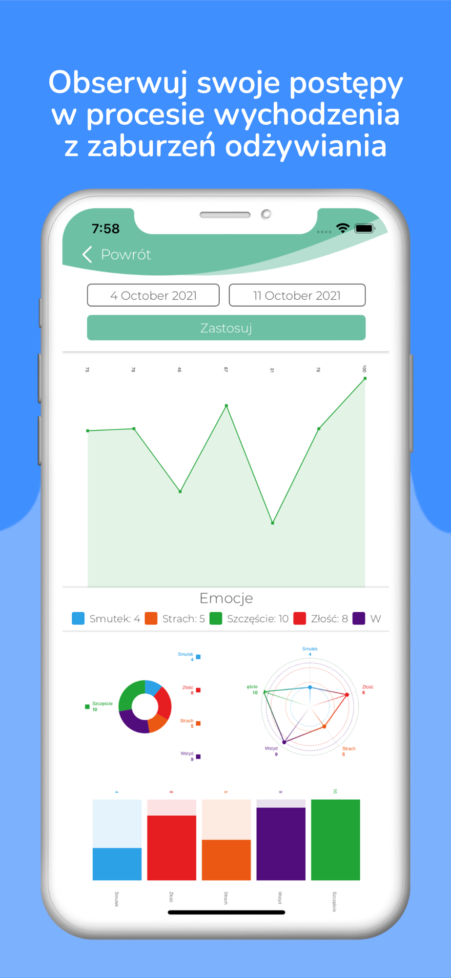 Poniższa aplikacja została stworzona z myślą o osobach zmagających się z zaburzeniami odżywiania, aby pomóc im nadzorować swoje postępy i dać bezpieczną przestrzeń do pracy i rozwoju. Aplikacja nie jest narzędziem do diagnostyki i leczenia, jest narzędziem dodatkowym, pomocnym przy procesie terapeutycznym, jednak nie zastępuje opieki specjalisty.