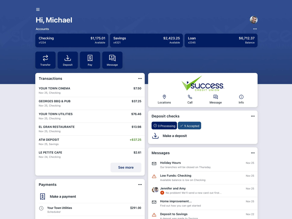 Success CU is your personal financial advocate. It’s fast, secure and makes life easier by empowering you with the tools you need to manage your finances.