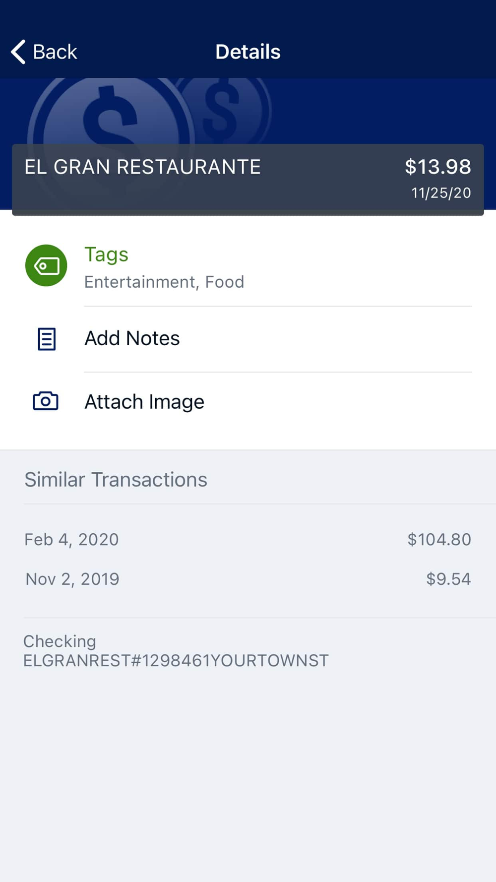 Keep your transactions organized by allowing you to add tags, notes and photos of receipts and checks.