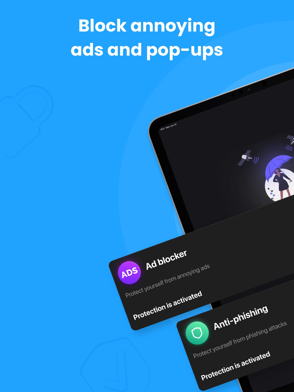 Let us worry about your digital security. Leave the ads behind and enjoy a clean browsing experience.