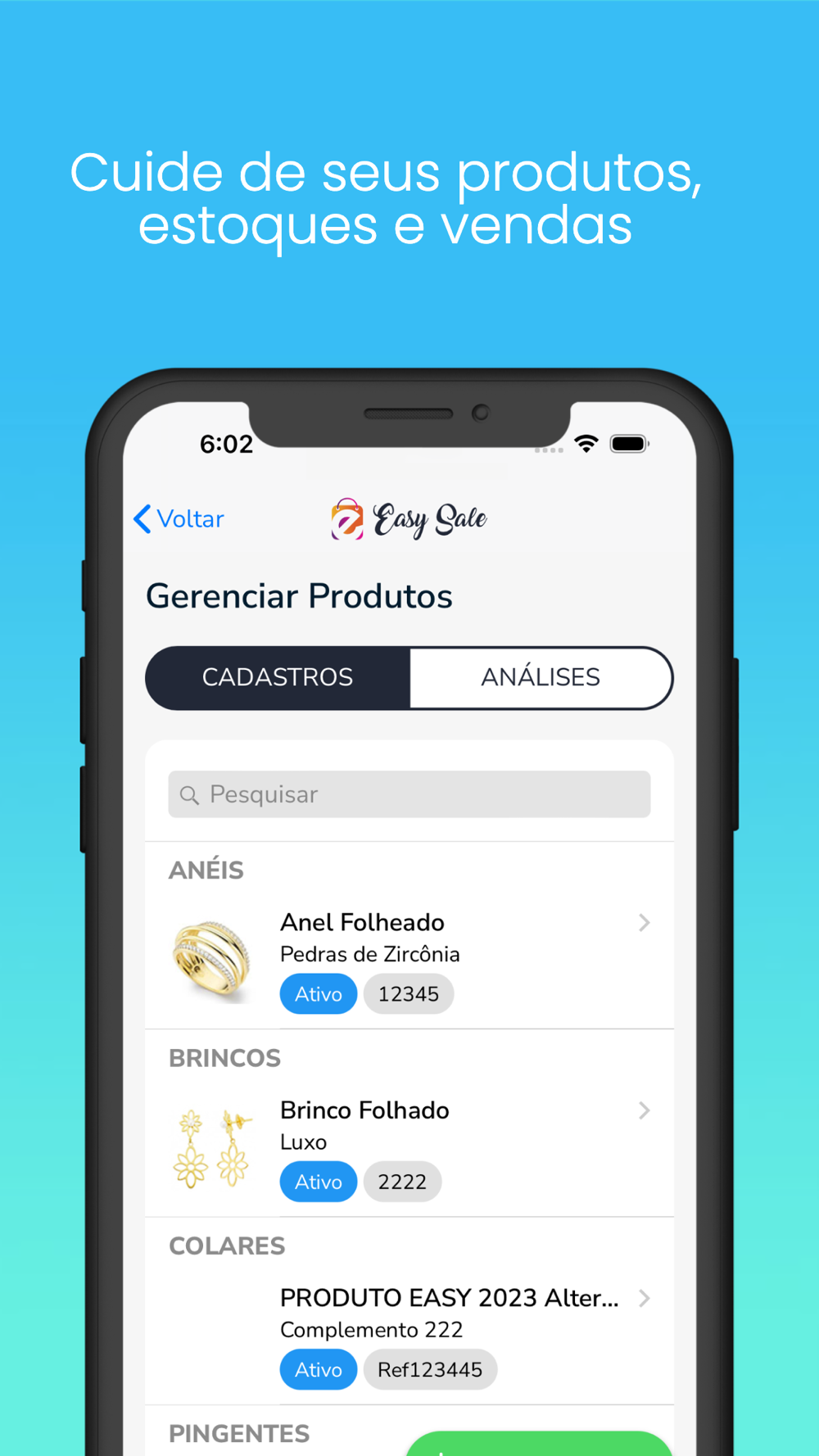 O Easy Sale é a melhor plataforma para gestão de revendas e revendedoras que trabalham com estoques consignados, atacado e varejo. Ideal para vendas diretas. Gerencie de forma fácil e descomplicada suas revendas, vendas, estoque, romaneios e financeiro... tudo na palma da sua mão.