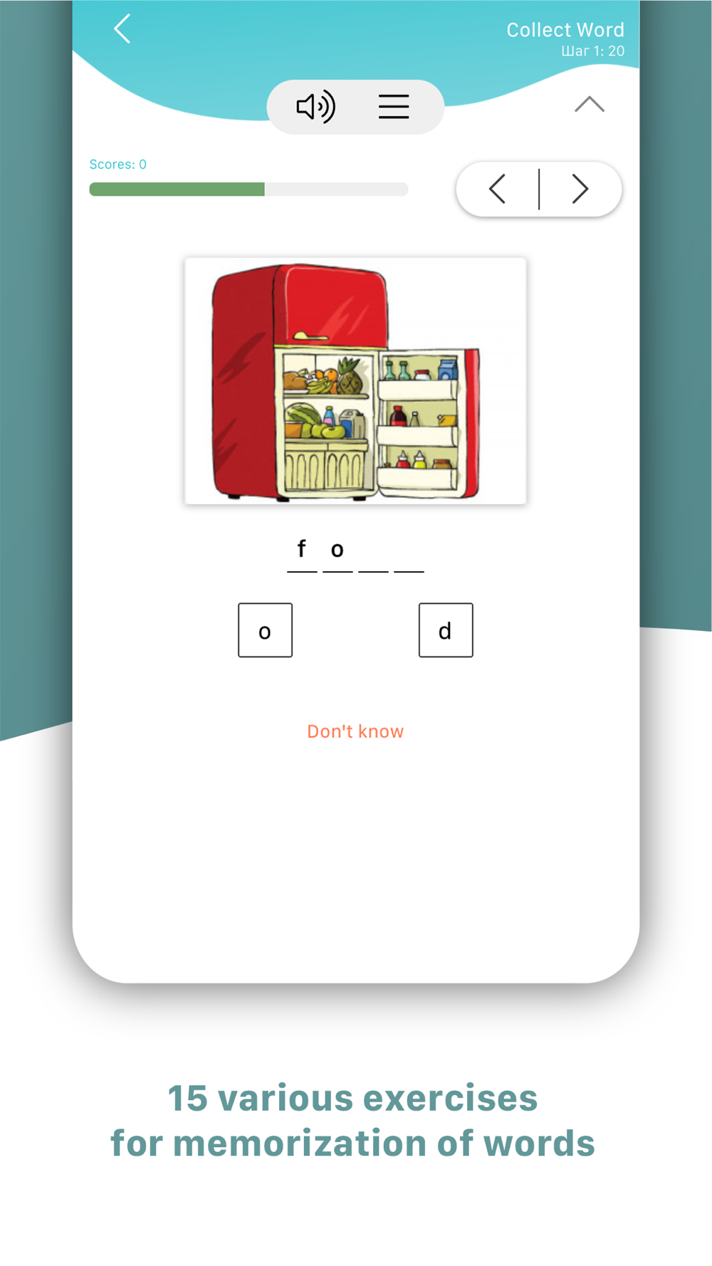 15 various workouts will help you remember not only the basic meanings of English words, but also their spelling, pronunciation, and use in specific examples. All memorization exercises have a large number of useful settings that will allow you to create a convenient personal trainer of English words.