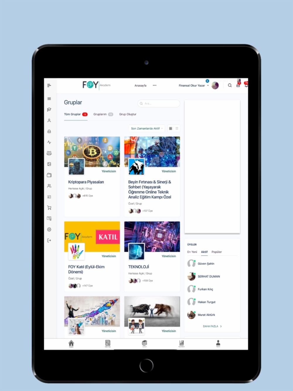 FOY Akademi uygulaması ile eğitimlere dilediğiniz yerden katılım sağlayabilir, yeni nesil online sosyal finansal okuryazarlık, eğitim ve gelişim platformu olarak sunduğumuz FOY Mecra sosyal medya alanında yer alan tüm etkinliklerden faydalanabilirsiniz.