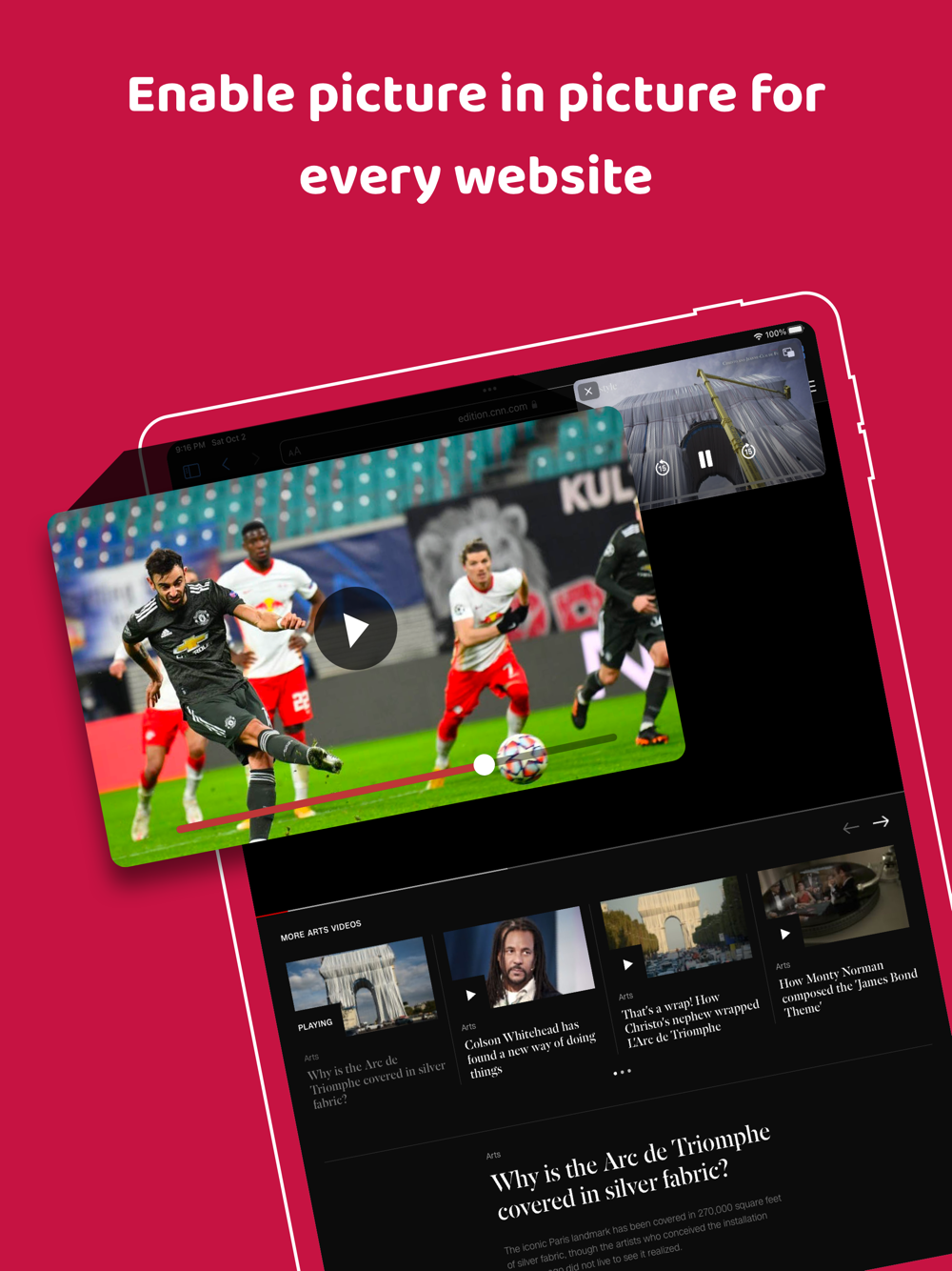 Web PiP Extension & Browser is an extension for Safari that lets users play videos in Picture in Picture Mode on every website.