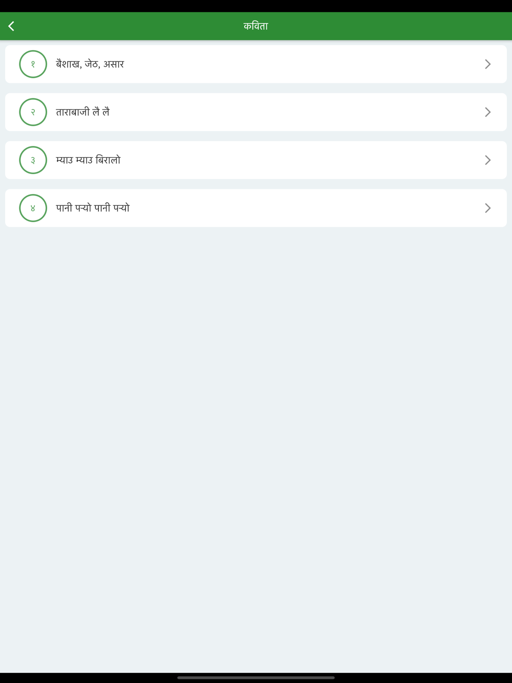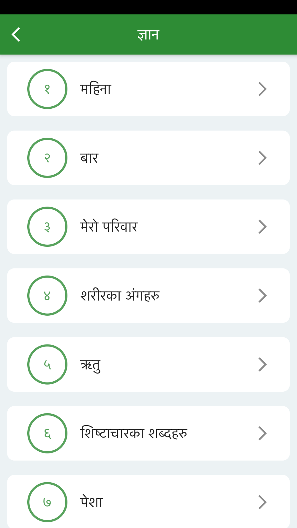 Nepali Barnamala is a Nepali language learning app that provides help with grammar, vocabulary, and pronunciation. Learning Nepali has never been this easy - we have modules that allow you to just tap and listen to how the word is pronounced.