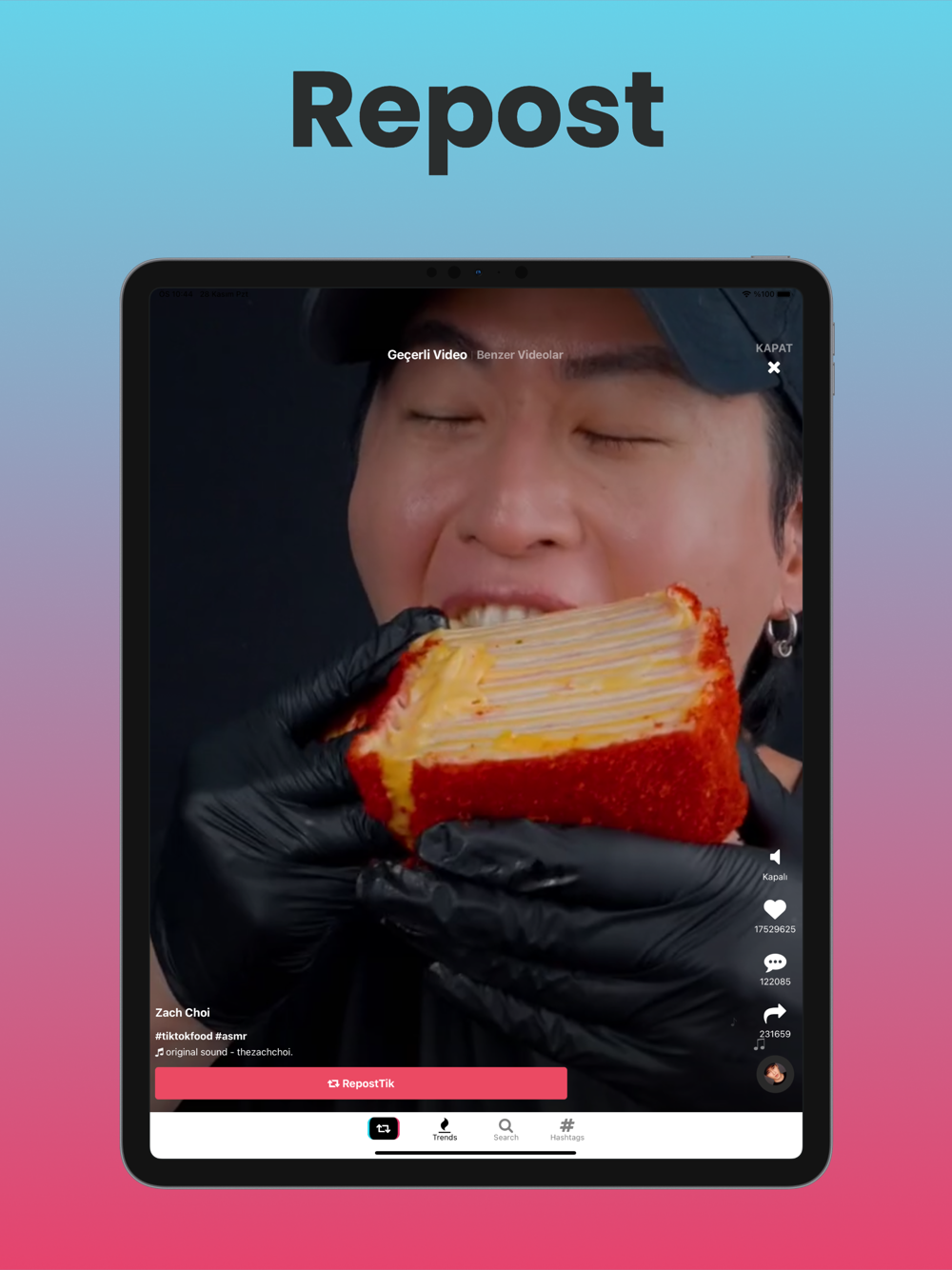 This app "ReposterTik" downloader is exactly what you look for! Tik tok downloader without watermark is suitable for those who want to edit others' interesting videos and repost them on their account.