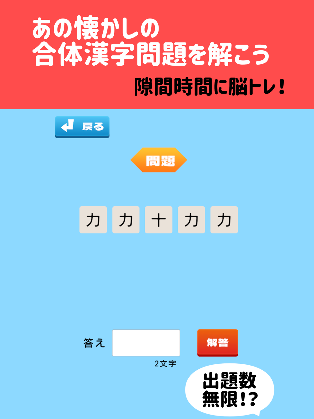 合体漢字脳トレアプリを楽しんでください!