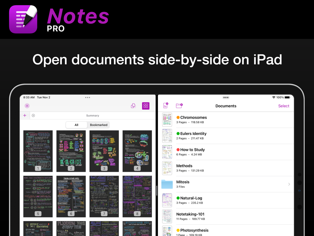 Notes Pro takes digital note-taking to the next level. Draw your thoughts and combine handwriting with photos and typing by using a wide range of tools to capture every detail. Organize your notes with folders and colorful labels. With easy navigation and a powerful search, you’ll always find your notes right where you left them.