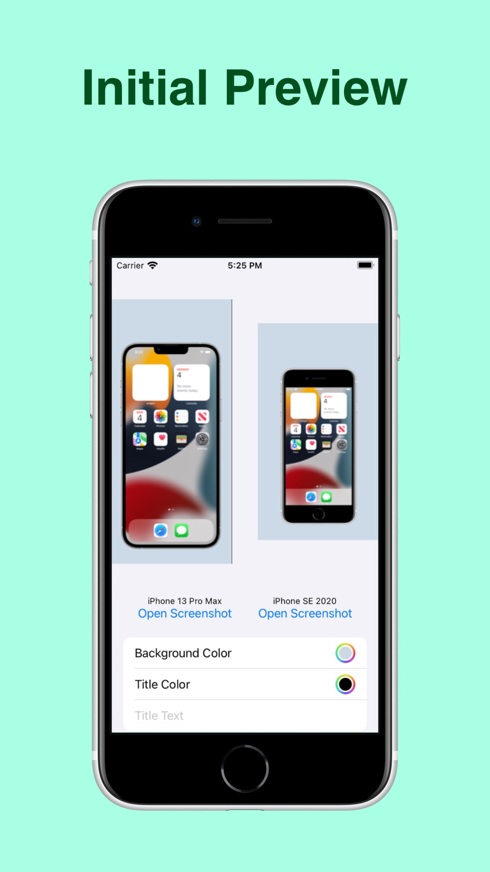 - Preview of both Device Sizes. (13 Pro Max and SE 2020)