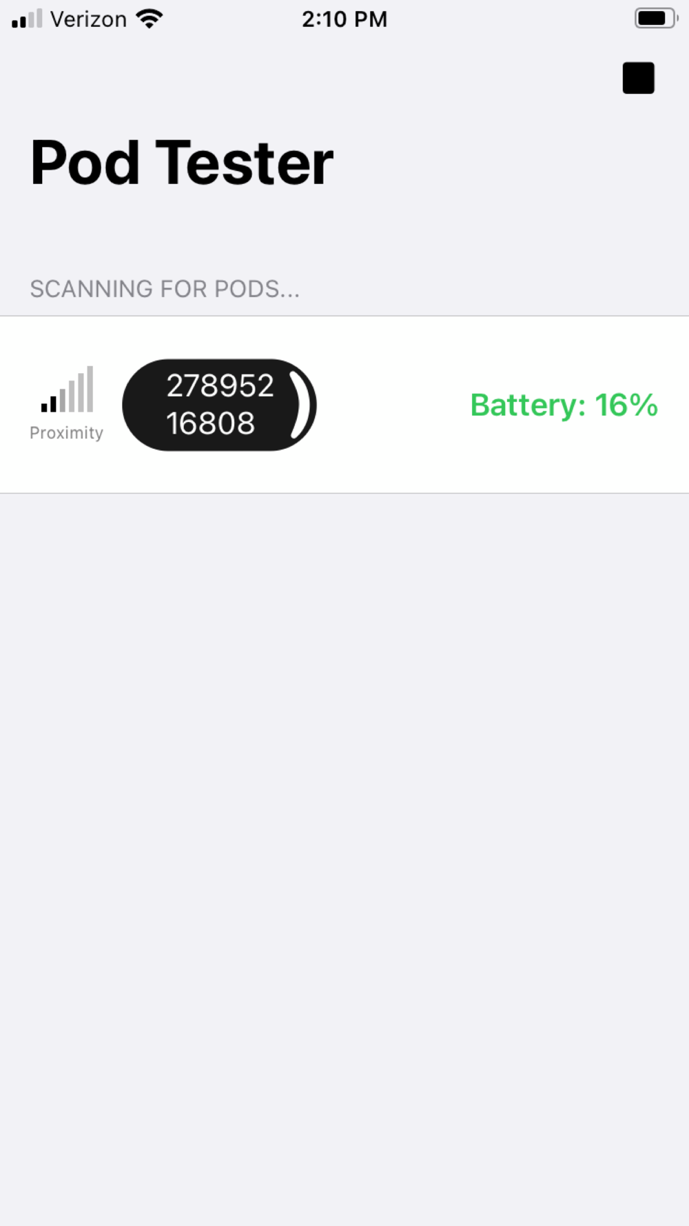 The Pod Tester uses Bluetooth proximity to discover and connect to WATCH LINK pods.