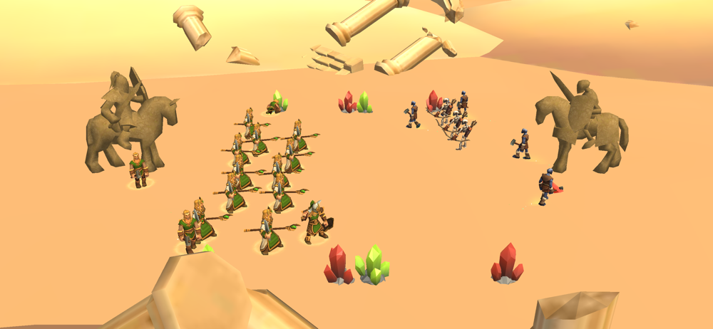 - Normal mode: Starting a new seven types of characters, create and control the units to destroy enemy monuments