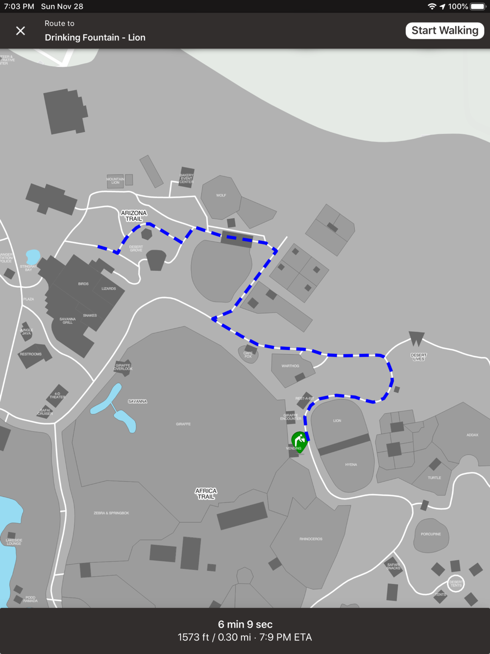 - Navigates you to the quickest path to walk from your current location to what you are looking for.