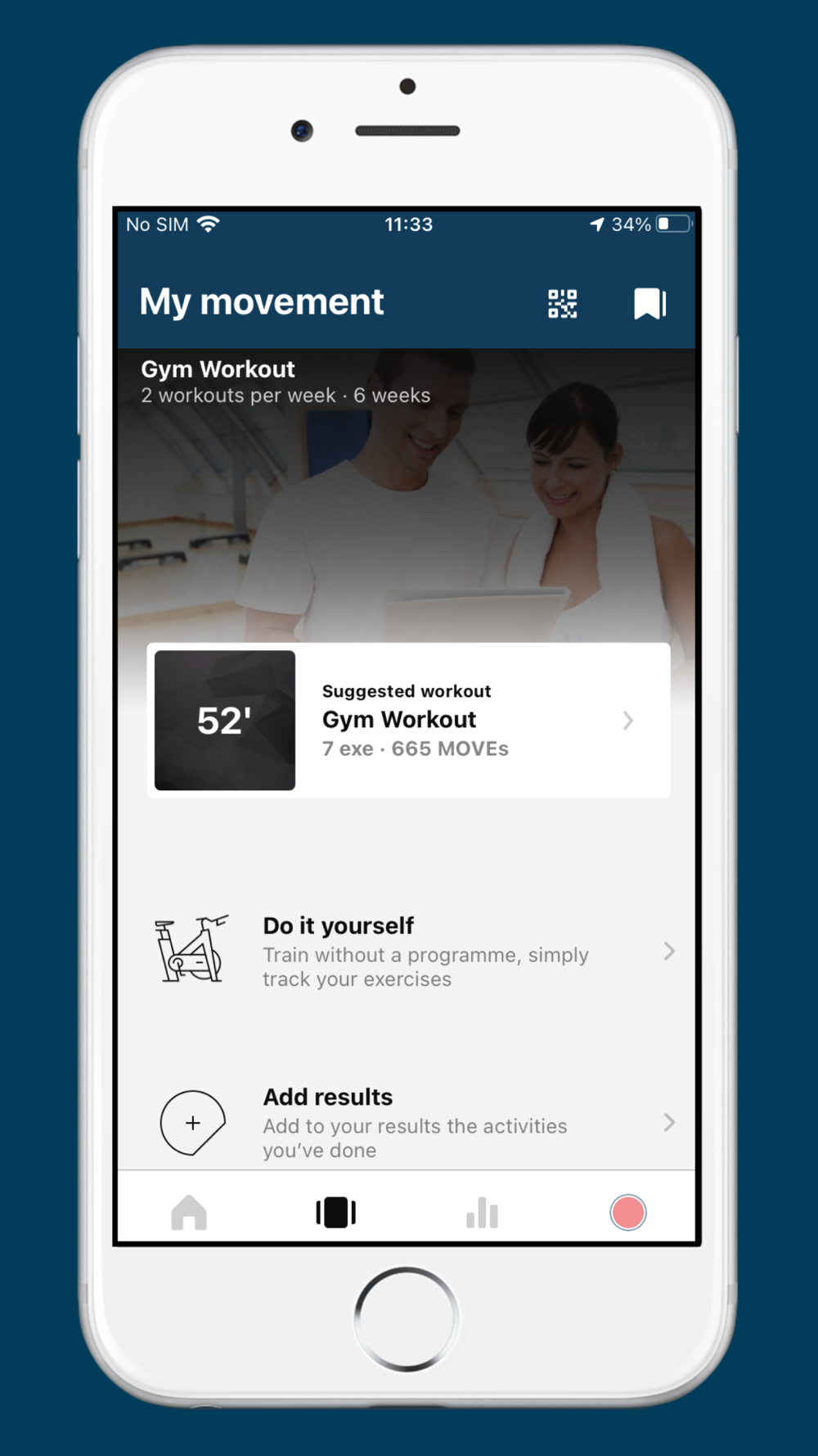 MY MOVEMENT: What you’ve chosen to do: here you will find your programme, classes you’ve booked, challenges you’ve joined and all the other activities you’ve chosen to do at your facility
