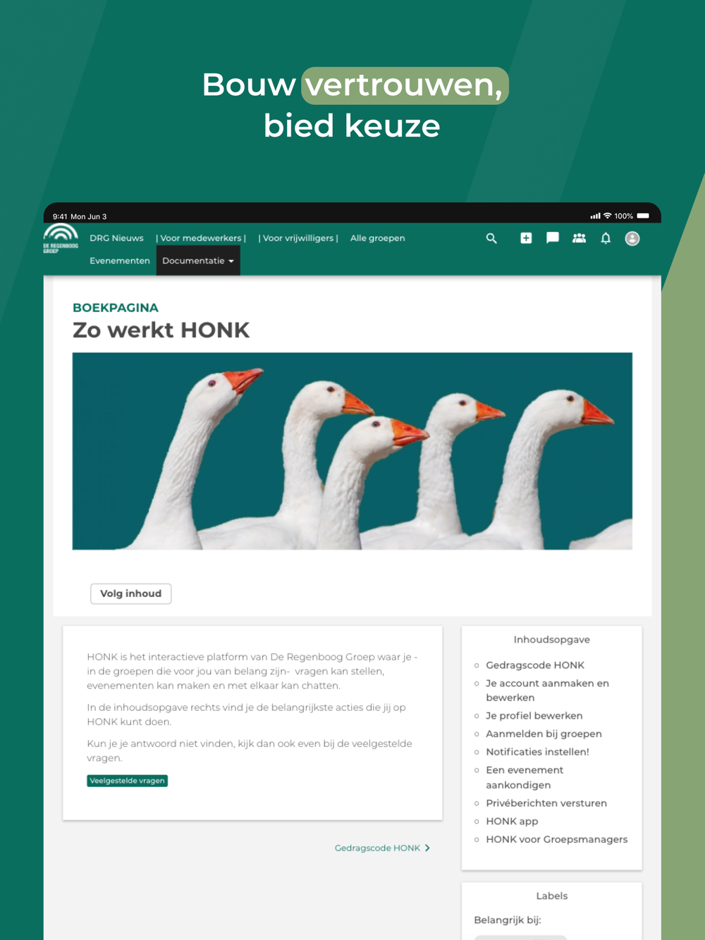 Je maakt op HONK je eigen profiel aan, daarvoor wordt je uitgenodigd. Je moet een mailadres hebben en je echte naam gebruiken.