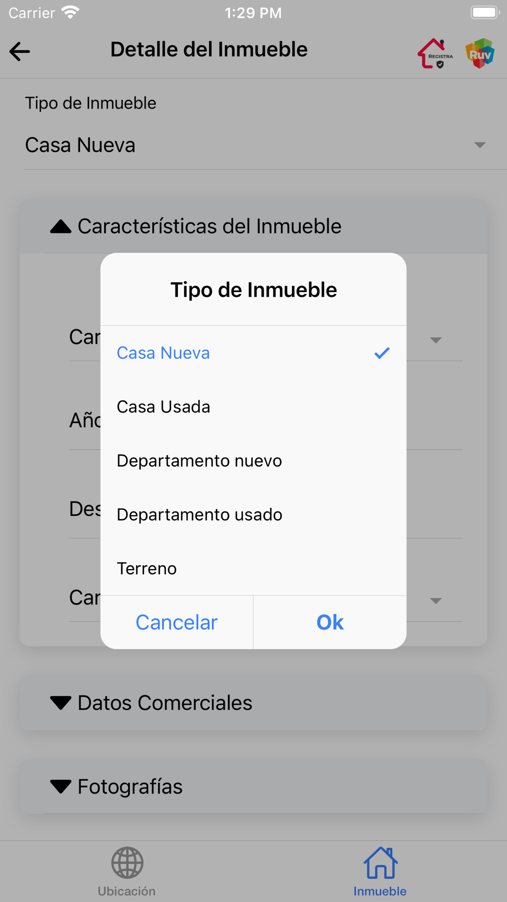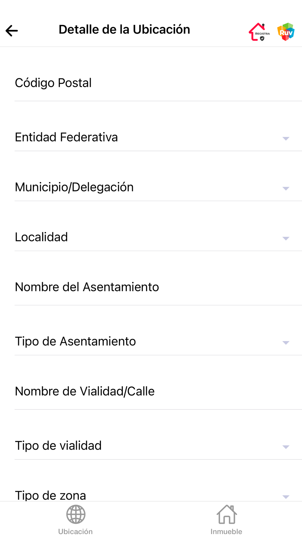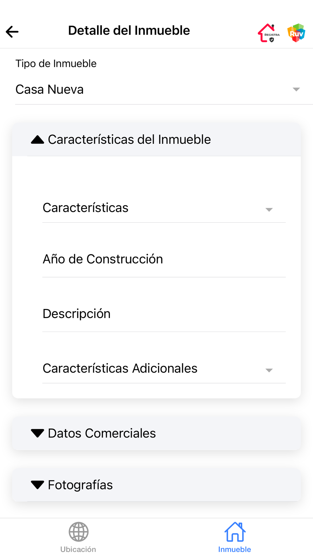 Aplicación móvil institucional para que las entidades registradas como Ejecutor de Obra a través de sus administradores puedan entrar registrar inmuebles, confirmen su ubicación y tomen las fotografías de los inmuebles.