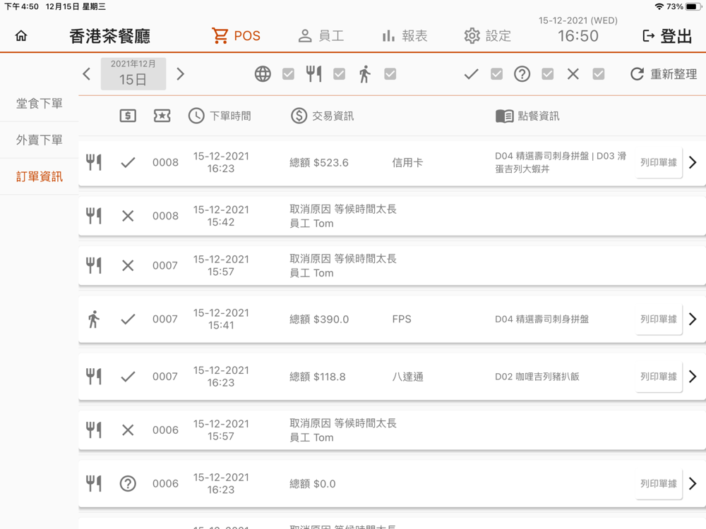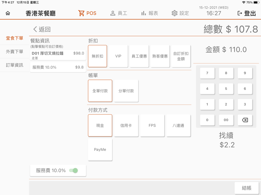 一套餐飲系統已可提供多種落單方式,適合各類餐廳日常營運的需要,功能包括: