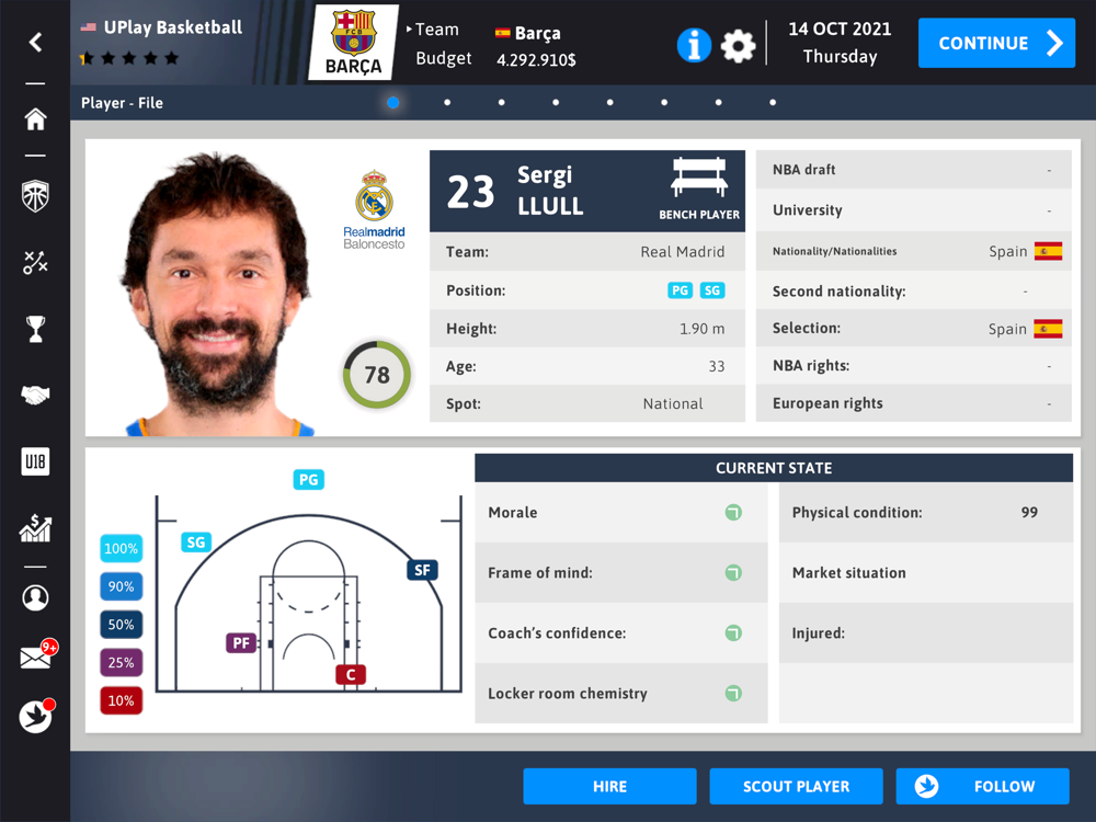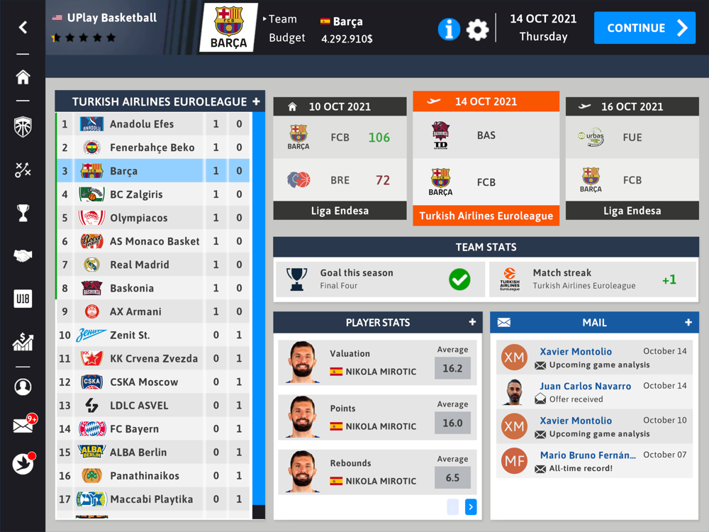 The new International Basketball Manager 2022 has been developed from scratch. The game’s interface and all its screens have been totally redesigned, making day-to-day management of your team far more realistic.