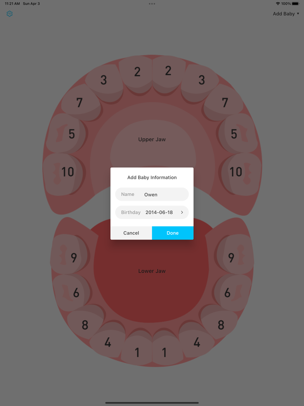 Easily record the eruption and shedding of your baby's deciduous teeth to protect your baby's oral health.