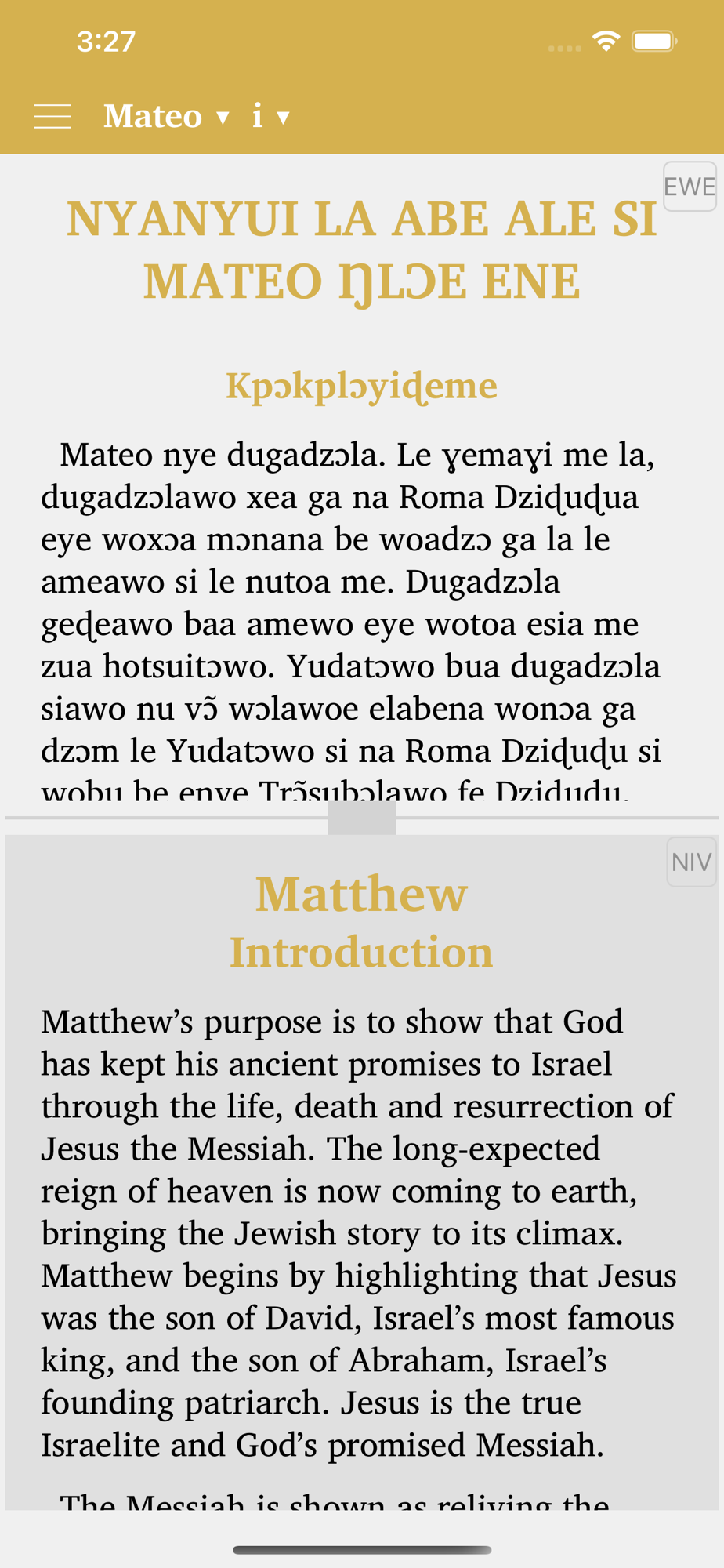 Biblica New International Version in English that can be read side-by-side or verse-by-verse with the Ewe Translation.