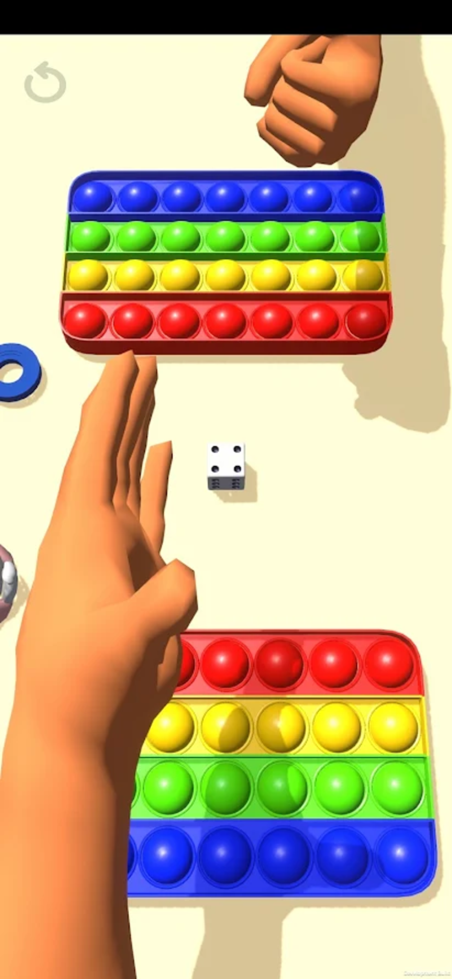 Players take turns pressing down POP based on any number of dice the opponent throws, and whoever push last one will lost.