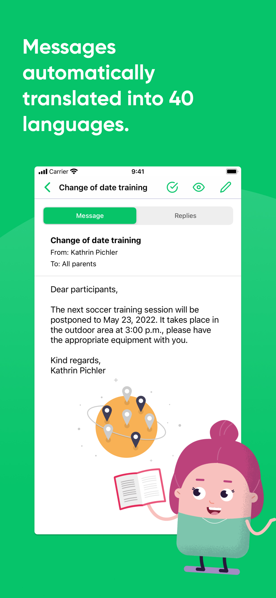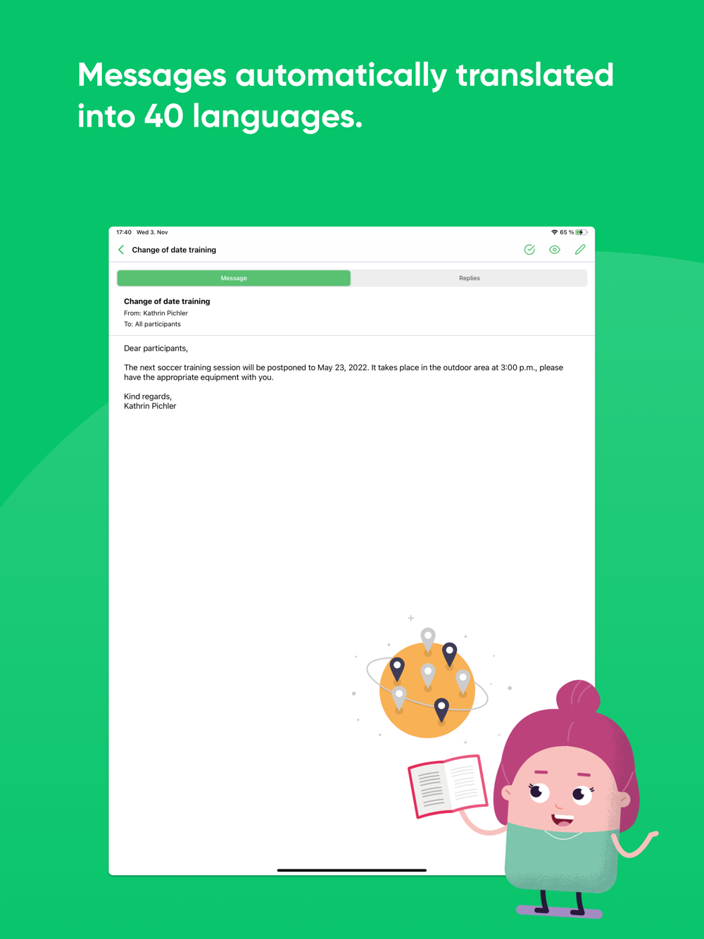 - Break down language barriers: translation function in 40 languages