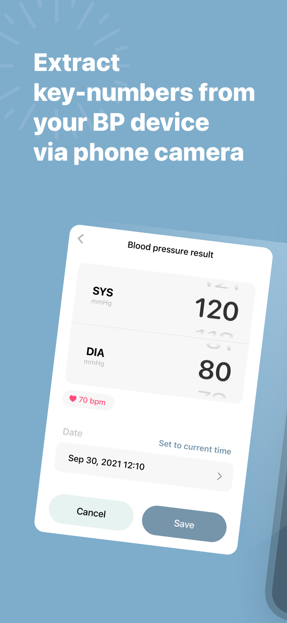 - Quick scan your blood pressure results into numbers and record them automatically.