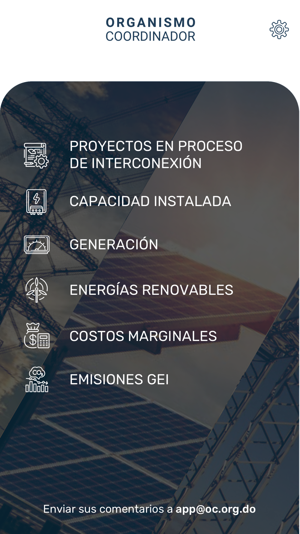 La información proporcionada por la aplicación es actualizada con los datos enviados por el Organismo Coordinador, quien como operador del sistema posee en todo momento los datos más actualizados del sistema eléctrico. De esta forma podrás manejar al mismo tiempo que el OC información sobre los siguientes temas: