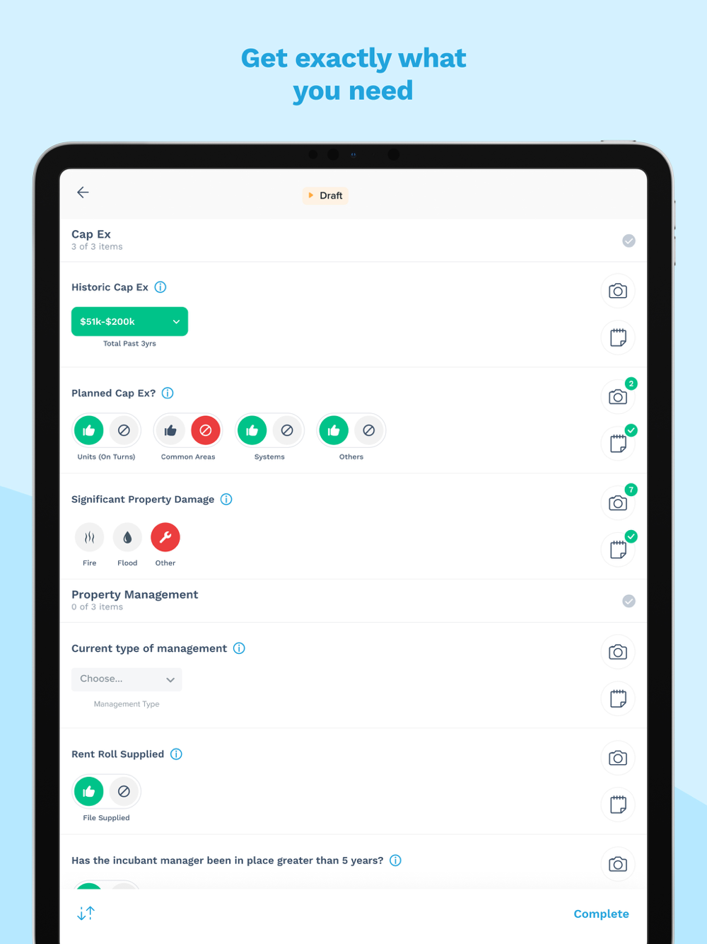 Optigo Happy comes complete with Freddie Mac Multifamily inspection templates and forms, so your team can go digital without missing a beat. Once on-site, empower your team to work smarter with features, like duplicating sections, that allow you to easily document units that weren't on your original inspection plan. When unexpected situations arise, edit inspection forms on the fly and they’ll automatically sync with your team’s devices.