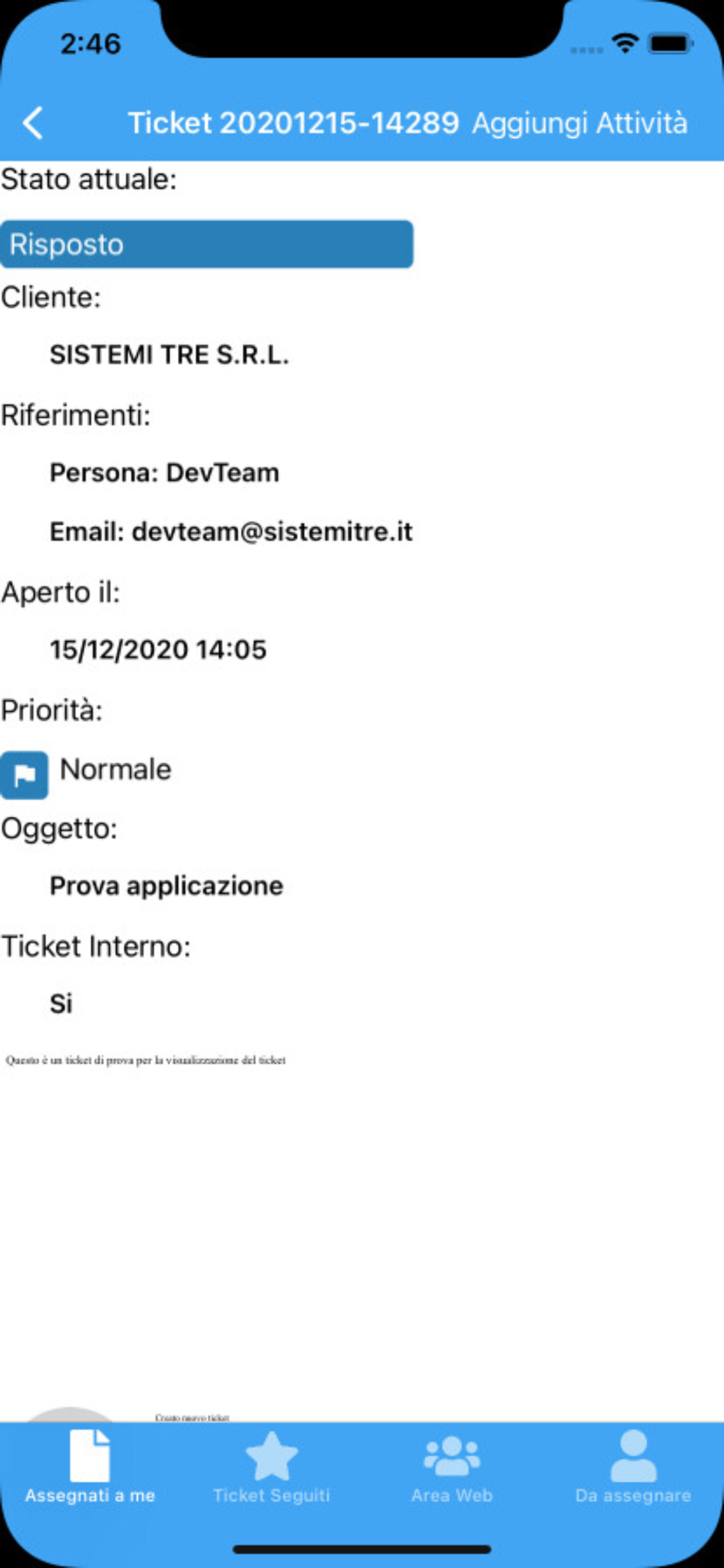 L'app è pensata per l'utilizzo in movimento e quindi la possibilità di visualizzare/modificare i ticket da qualunque parte del mondo.