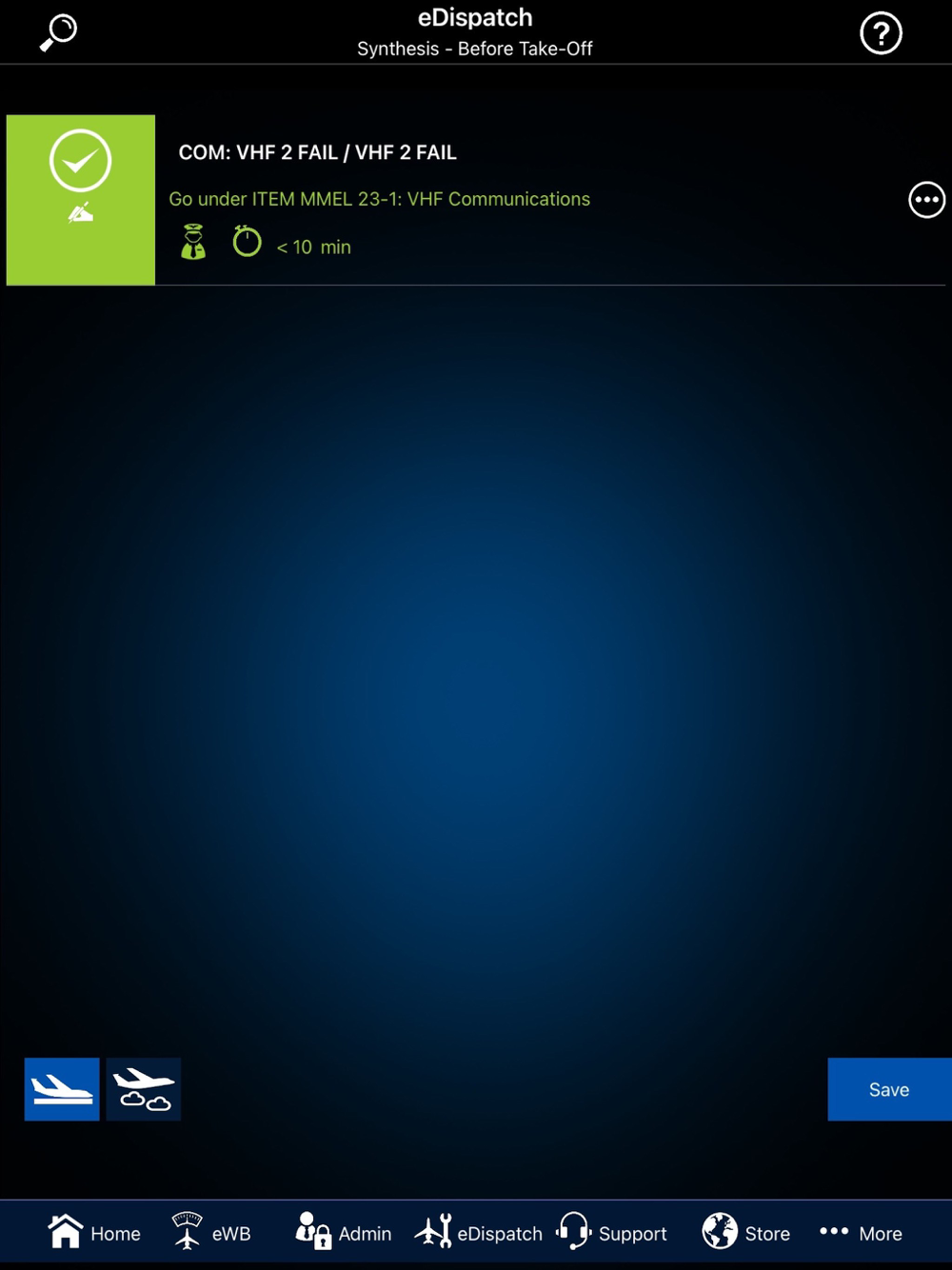 The eDispatch application gathers all the Dassault dispatch documentation, and quickly provides the dispatch conditions based on the Fault and CAS messages.