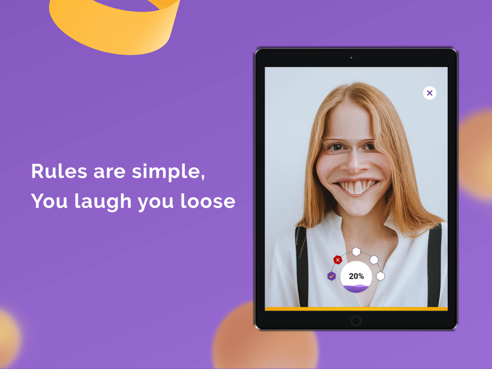 Start playing Dorfy today with your friends and family and try not to laugh. The app looks at you using the camera, and it can tell when you're laughing, or even smiling. If you laugh you lose or else win and grab the badges.
