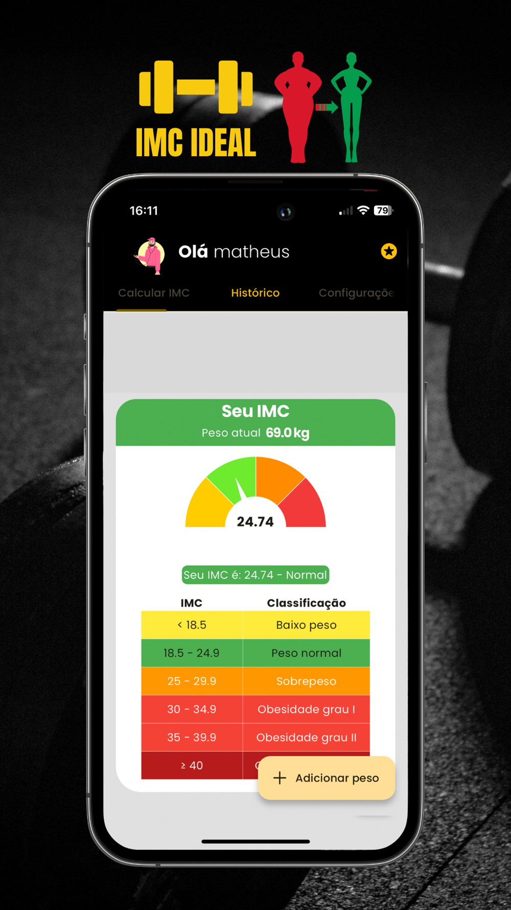 IMC adulto, IMC criança, IMC classificação... Personalize tudo no seu perfil!
