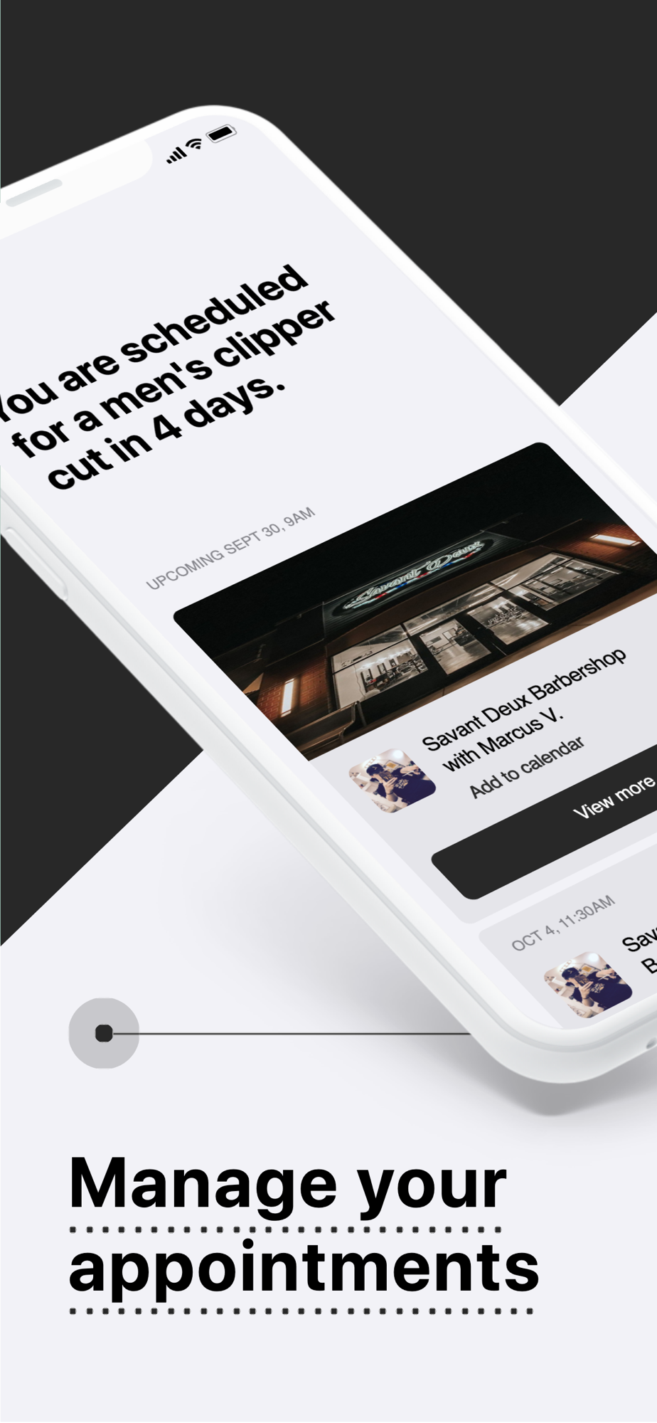 Our app lets you book and pay for a haircut or shave in a few taps.
