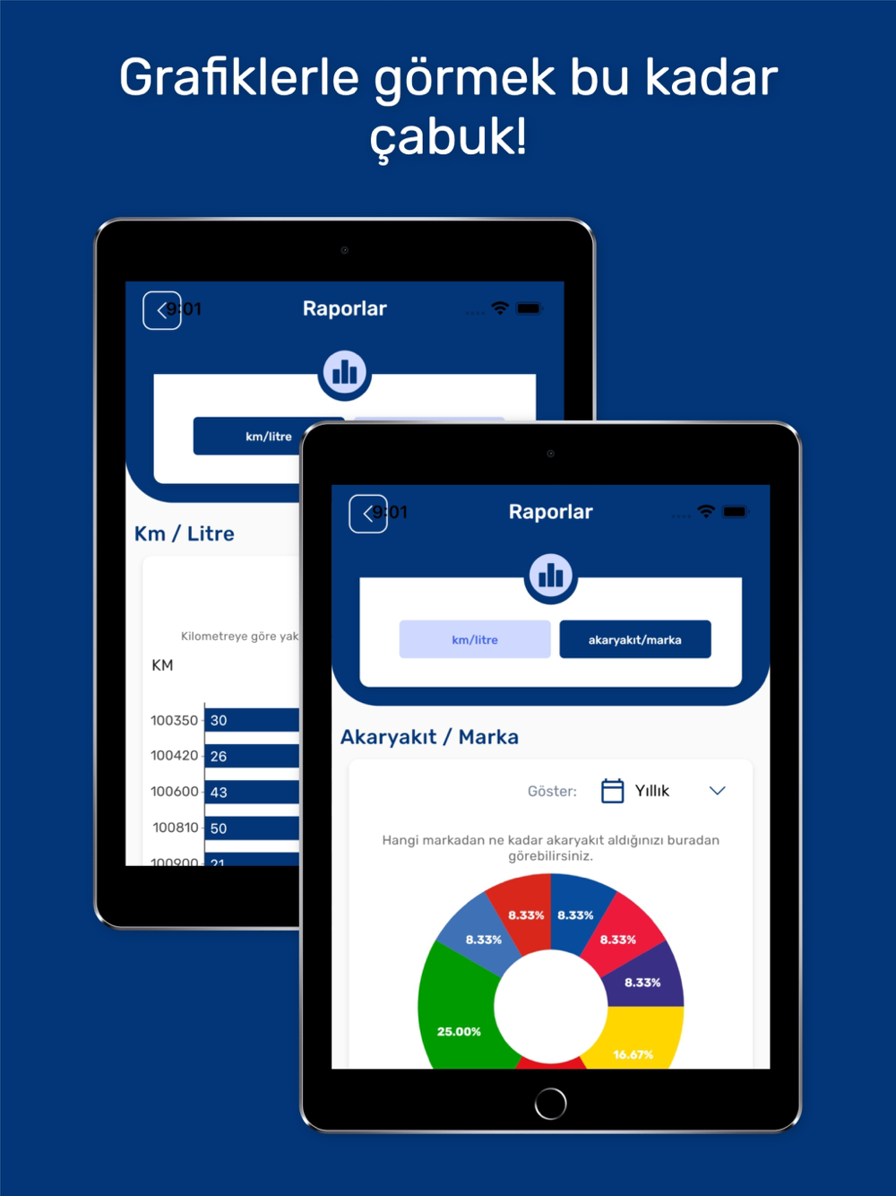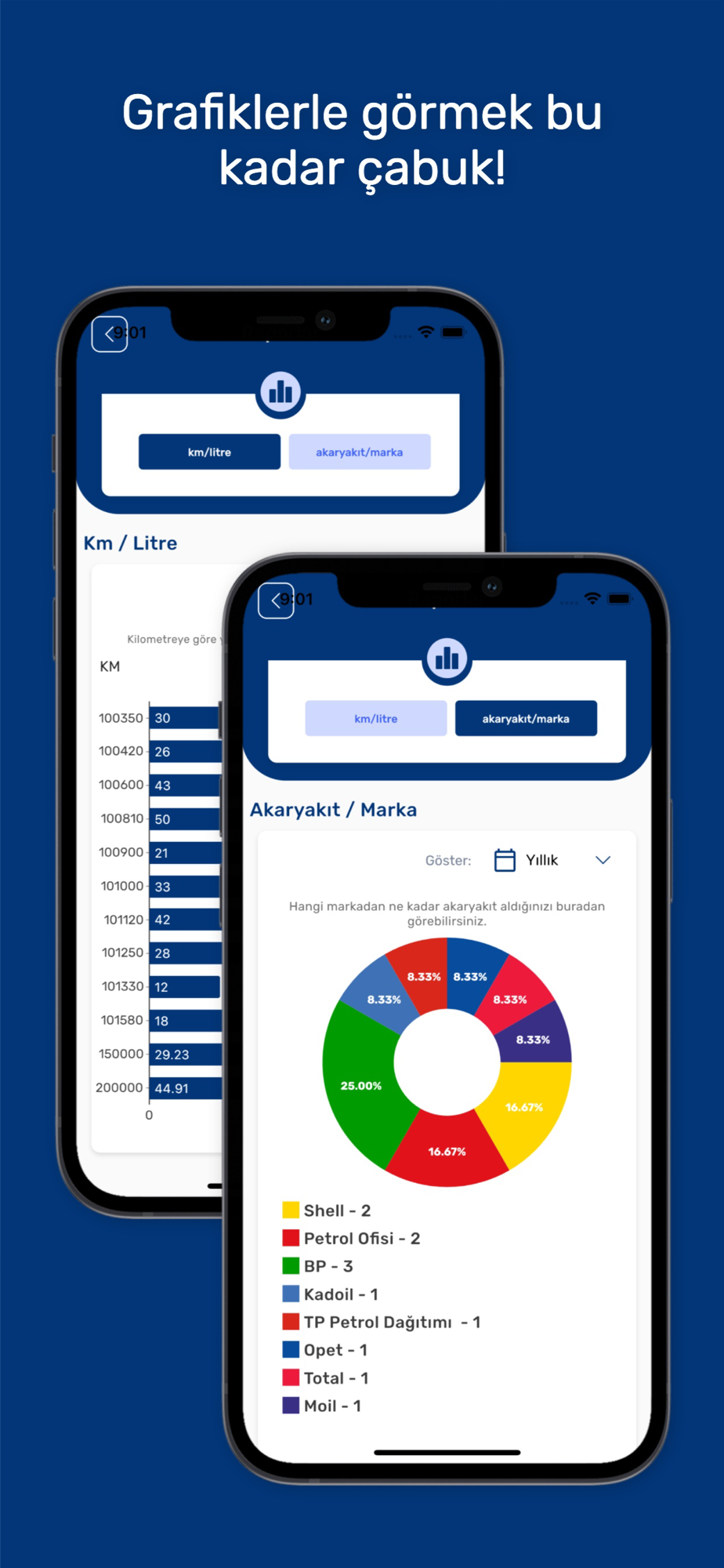 Raporlar oluşturun ve harcamalarınızı, araç için benzin alımlarınızı, kilometrede ne kadar yakıt harcadığınız gibi bilgileri takip edin.